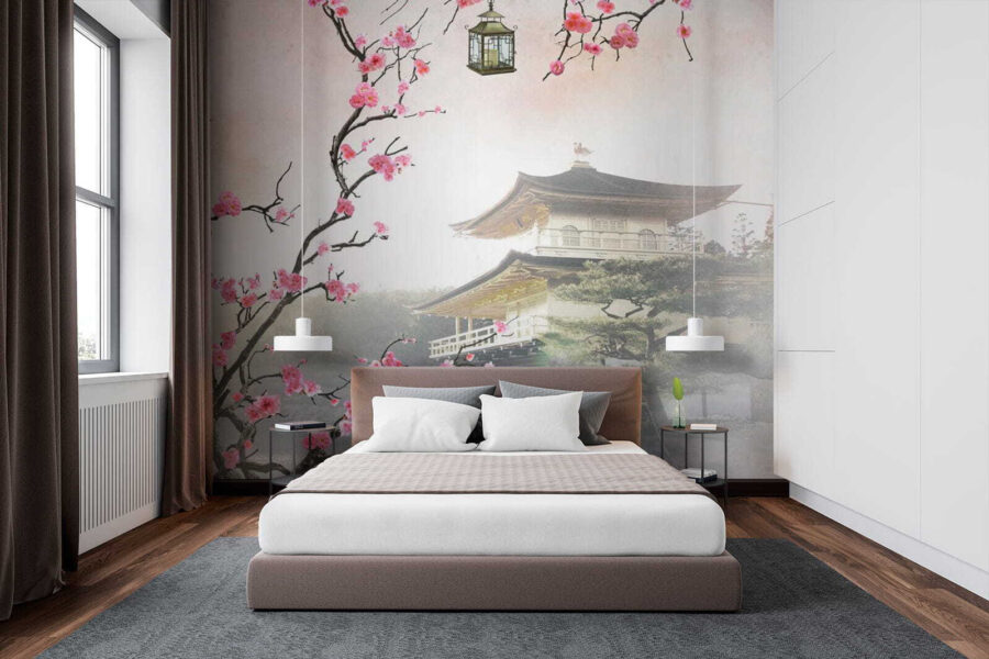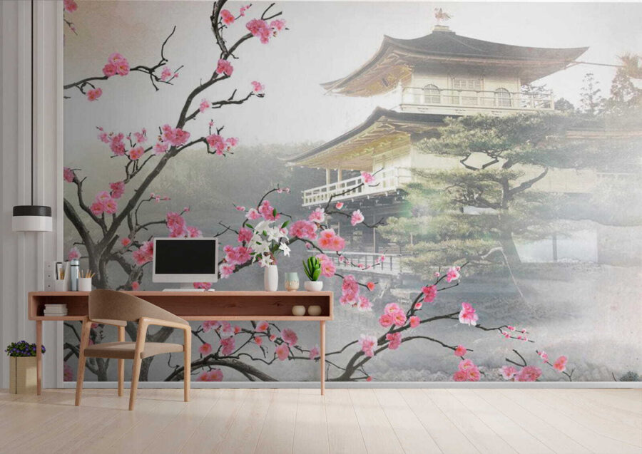 Imaginez un peu : vous avez eu une longue journée, vous vous asseyez sur votre canapé et voilà que vous voyez cette superbe peinture murale : “Des fleurs encadrant un temple japonais serein”. Vous aurez l’impression de vous être évadé dans un jardin paisible à l’autre bout du monde. Les délicates fleurs de cerisier ruissellent, encadrant un temple calme qui respire la tranquillité. Et ces couleurs douces ? De la magie à l’état pur. Parfait pour tous ceux qui aiment la culture japonaise ou qui souhaitent simplement ajouter une touche de zen à leur espace.