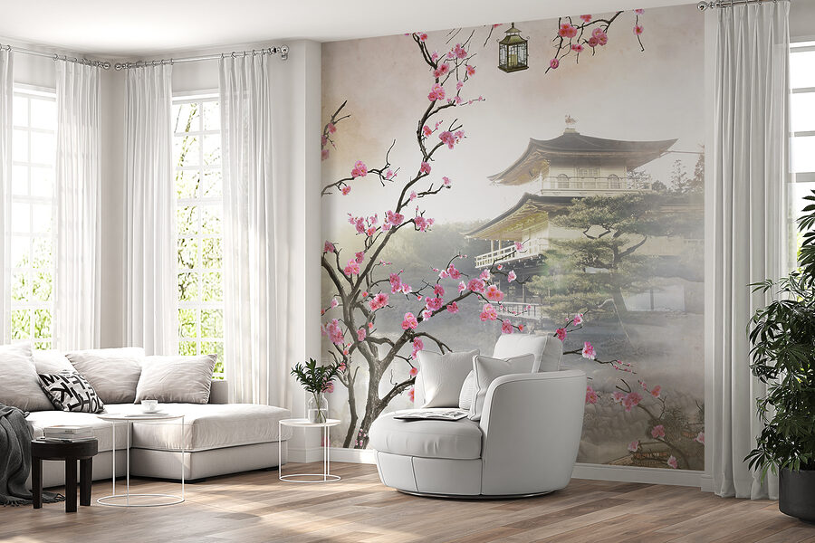 3 avis pour Papier peint Fleurs encadrant un temple japonais serein