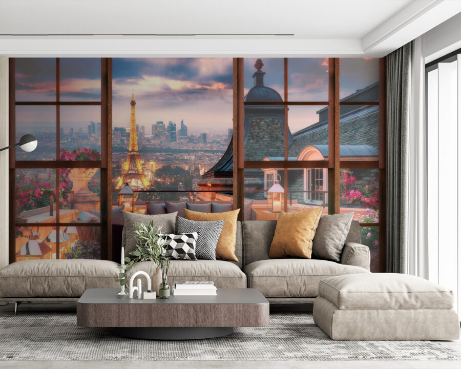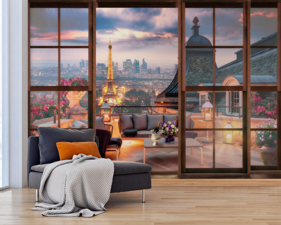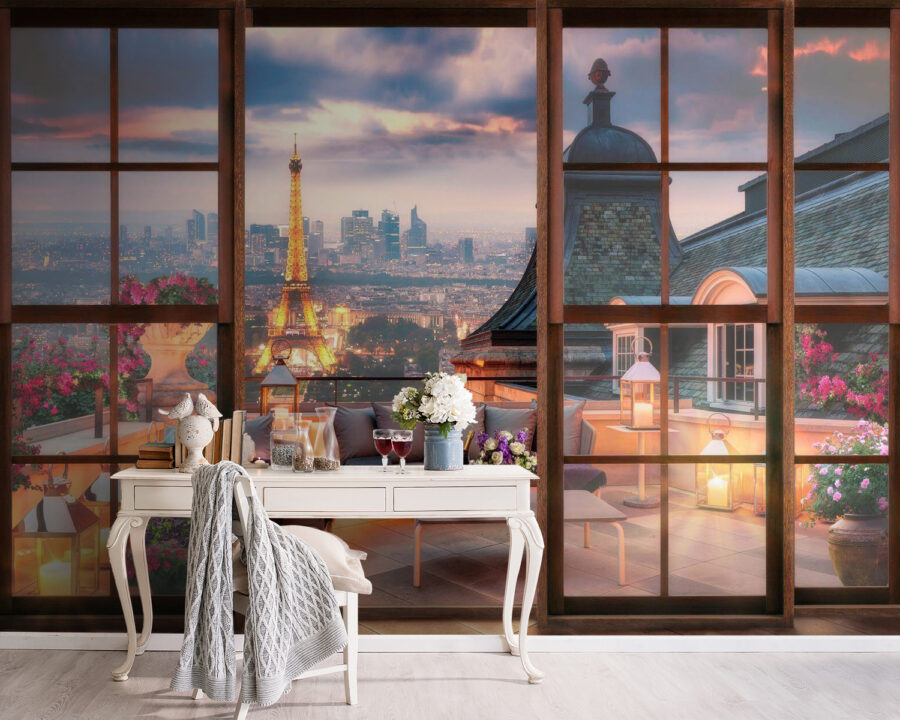 Imaginez que vous venez d’entrer dans un coin douillet à Paris – oui, c’est ce à quoi ressemble cette fresque murale. “Une bouteille de vin dans un seau de glace, et voilà une ambiance chic instantanée. Parfaite pour ajouter un petit je ne sais quoi à votre salon ou à votre salle à manger, cette peinture murale ne se contente pas de décorer, elle vous transporte. Imaginez : Au lieu de murs simples, vous avez la vue sur le paysage urbain d’une terrasse parisienne. Du vin sur la table, des coussins moelleux partout, des fleurs qui ajoutent une touche de couleur – le tout magnifiquement encadré par vos “fenêtres”. On a l’impression de pouvoir entendre le bourdonnement lointain de la ville sous la lueur de la Tour Eiffel. Une petite tranche d’élégance européenne, directement chez vous. Parfait pour les rêveurs et les passionnés de décoration, il ajoute de la chaleur, du charme et une touche de romantisme. Qui a besoin d’un billet d’avion ?