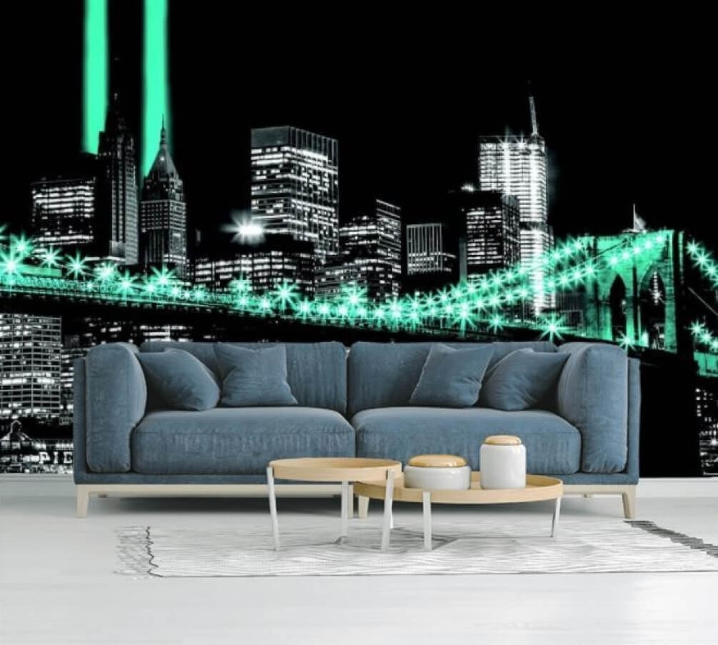 Transform any wall into a captivating scene with this stunning mural of a bridge drenched in lights, perfect for those who adore city vibes. Just imagine walking into a room and being greeted by this electrifying view—it’s like a little slice of urban magic right at home. The rich contrasts of black and green evoke a cozy yet vibrant atmosphere, making it a perfect backdrop for movie nights or late-night chats. This mural just might make you feel like you’ve strolled right into the heart of a city that never sleeps. Who needs to travel when your wall can whisk you away?