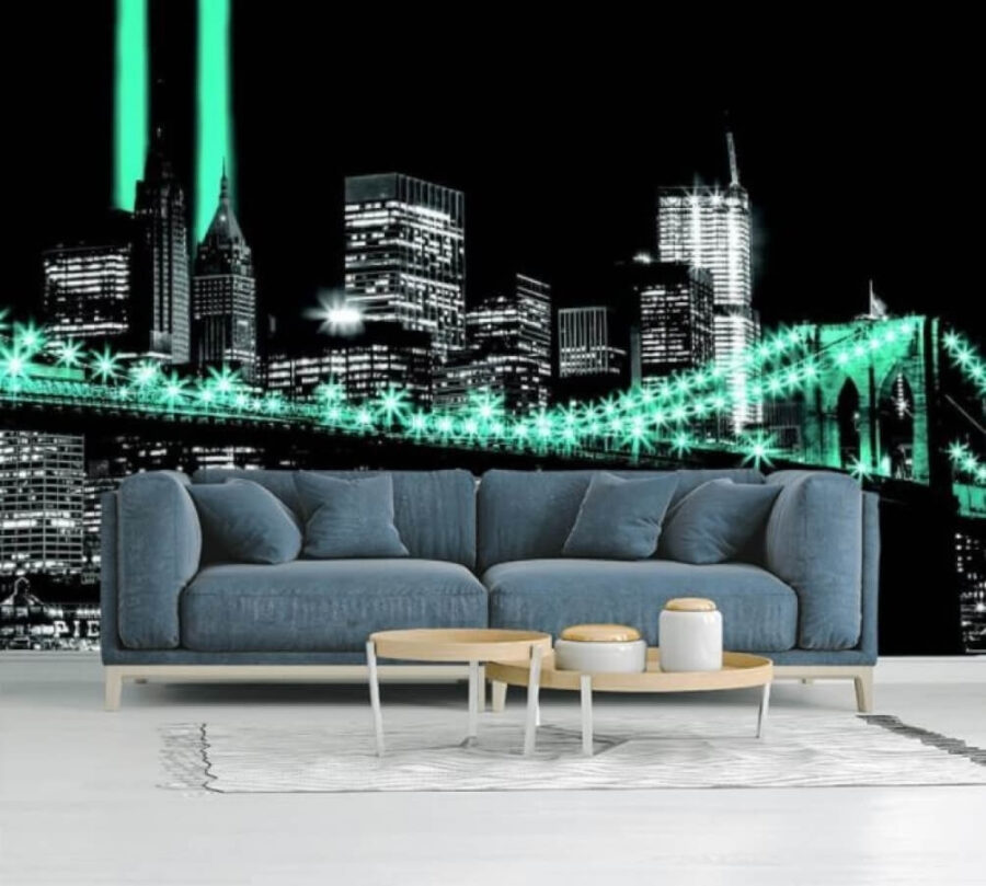 Transformez n’importe quel mur en une scène captivante grâce à cette superbe fresque murale représentant un pont baigné de lumières, parfaite pour ceux qui adorent l’ambiance urbaine. Imaginez-vous entrer dans une pièce et être accueilli par cette vue électrisante : c’est comme un petit bout de magie urbaine chez vous. Les riches contrastes entre le noir et le vert évoquent une atmosphère chaleureuse et dynamique, ce qui en fait un décor parfait pour les soirées cinéma ou les discussions tardives. Cette fresque murale vous donnera peut-être l’impression d’avoir flâné au cœur d’une ville qui ne dort jamais. Qui a besoin de voyager quand votre mur peut vous transporter ?