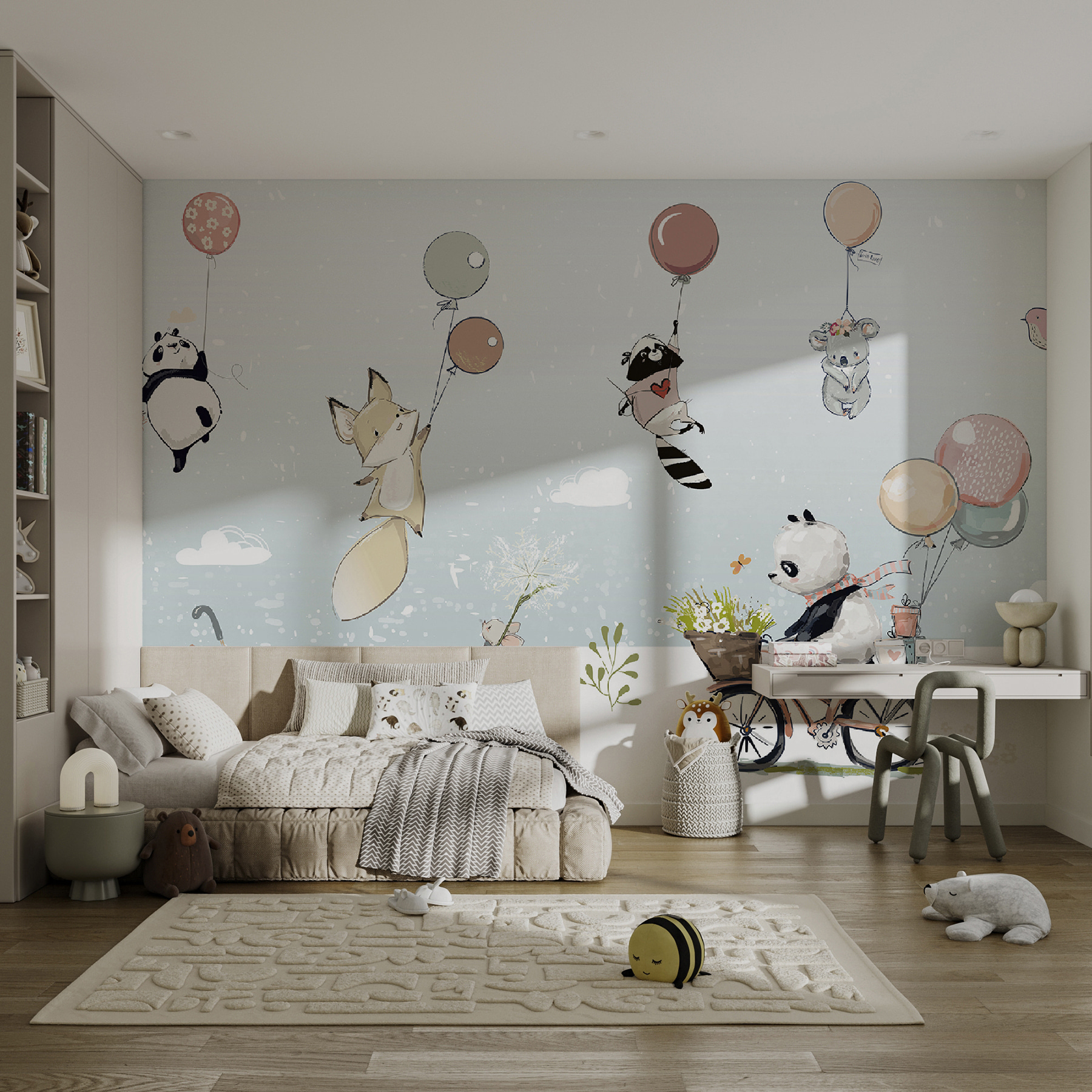 Imaginez que vous entrez dans la chambre de votre enfant et que vous êtes accueilli par une scène fantaisiste représentant un panda tenant un panier de fleurs – c’est comme entrer dans un doux rêve éveillé. Cette ravissante peinture murale est parfaite pour les chambres d’enfants ou tout autre espace où vous souhaitez apporter une touche de charme ludique. L’apparence douce et duveteuse du panda, associée à des ballons colorés et à une bicyclette, est synonyme d’amusement et d’aventure. Imaginez que vous racontiez des histoires à l’heure du coucher en vous inspirant de ces charmants personnages. Ce n’est pas seulement un décor, c’est un théâtre pour l’imagination, qui apporte des sourires et un peu de magie dans les moments de tous les jours.