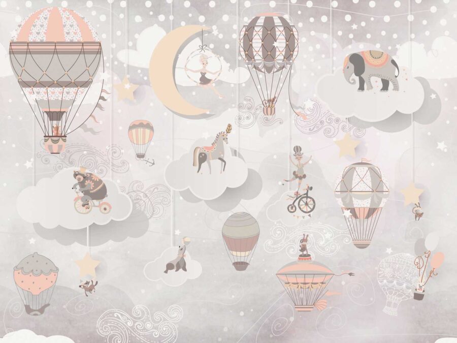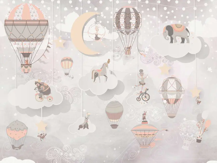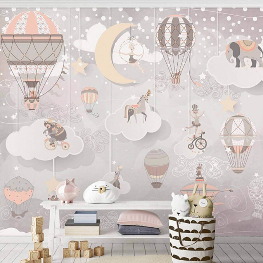 Transform any child’s space into a whimsical wonderland with this delightful wall mural featuring hot air balloons and charming animals! Imagine a cozy room filled with laughter and dreams, where a circus bear pedals a bike in the clouds while a graceful elephant floats nearby. The soft, pastel colors create a soothing vibe, perfect for bedtime stories. Picture tiny travelers drifting through a dreamy sky, with a giraffe peeking from behind a balloon. It’s like a hug for the walls! This mural isn’t just decor; it sparks imagination and adds a sprinkle of joy to everyday life. Perfect for playrooms or nurseries, it invites little ones to dream big. Who wouldn’t want to wake up to this enchanting view?