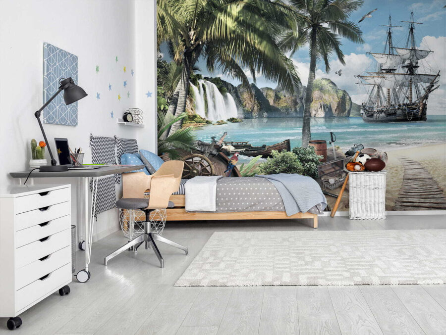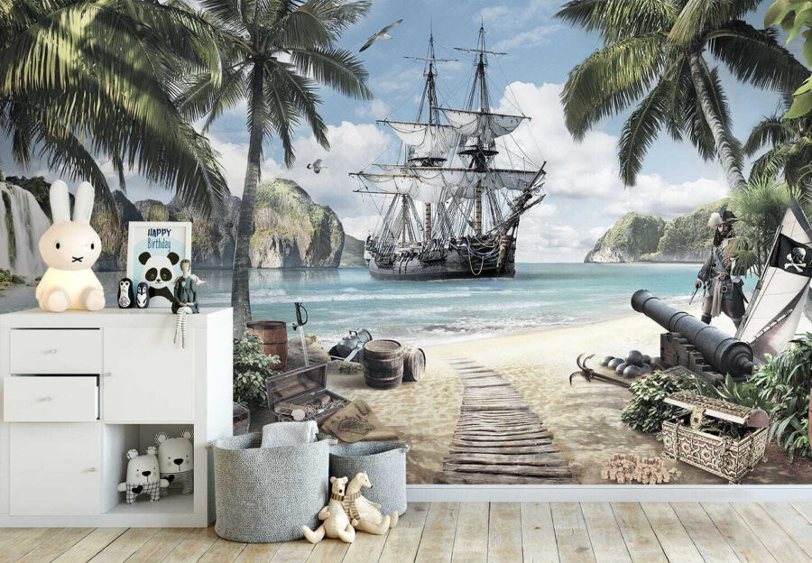 1 avis pour Papier peint Navire pirate ancré dans un paradis tropical