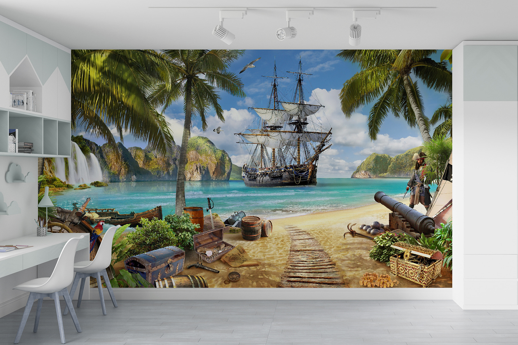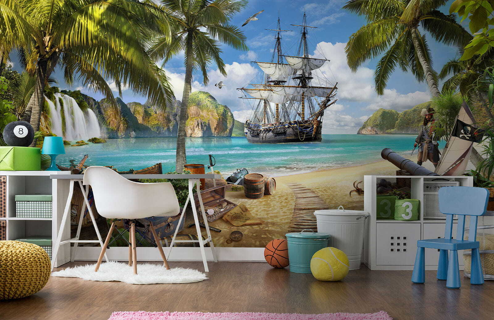 Transformez n’importe quel espace en un paradis ensoleillé avec le “Tableau mural bateau pirate ancré dans un paradis tropical”. Imaginez que vous pénétrez dans un monde où la brise marine effleure doucement votre visage et où des palmiers vibrants se balancent au-dessus de vous. Cette peinture murale donne vie à une scène étonnante : un bateau pirate aventureux amarré près d’eaux cristallines, entouré de trésors et d’une nature luxuriante. Les enfants auront l’impression de participer à une aventure de cape et d’épée, en explorant des trésors cachés et des îles secrètes. Plus qu’un simple décor, c’est une étincelle de créativité, d’histoires inspirantes et de rêves sans fin. Qui n’aurait pas envie de prendre le large à chaque fois qu’il jette un coup d’œil à son mur ? Parfaite pour les salles de jeux ou les chambres à coucher, cette peinture murale crée une charmante évasion qui ne manquera pas de faire sourire tout le monde. Laissez l’imagination prendre le large !