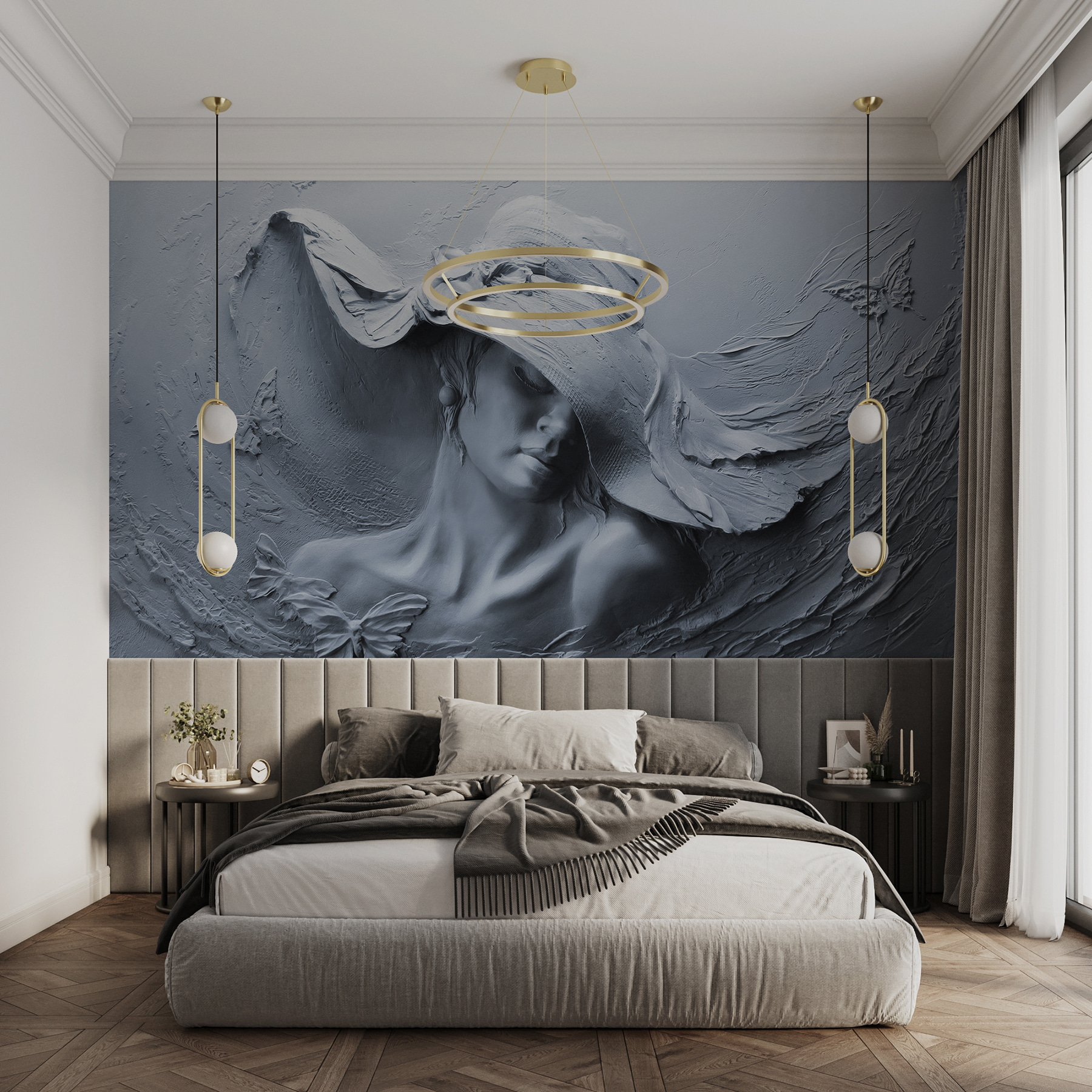Transformez votre espace avec cette peinture murale captivante, qui représente une sculpture sereine d’une femme avec un chapeau. C’est comme si vous faisiez entrer une douce brise dans votre pièce – c’est une source d’inspiration instantanée. Imaginez-vous assis avec votre livre préféré, les délicats papillons qui tourbillonnent autour d’elle semblent presque vivants. Cette pièce remarquable ne se contente pas d’ajouter un intérêt visuel, elle suscite des rêves et des histoires. Elle est parfaite pour stimuler la créativité ou tout simplement pour susciter un sourire lorsque vous passez à proximité. Vous avez un mur vide ? Cette peinture murale est comme une étreinte chaleureuse, invitante et un peu mystérieuse. Parfait pour tous ceux qui aiment les décors uniques qui parlent à l’âme.