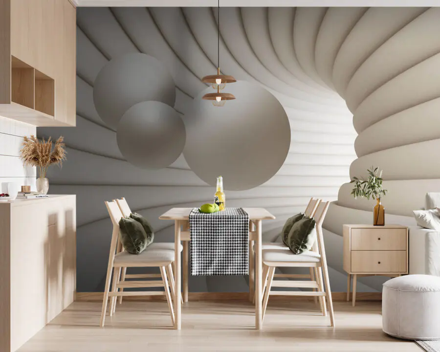 Transformez n’importe quelle pièce en un lieu d’évasion fantaisiste grâce à cette peinture murale captivante représentant des sphères tourbillonnantes dans un espace abstrait. Imaginez que vous entrez dans une dimension de rêve où les courbes s’enchaînent et où les sphères brillantes dansent le long des murs. C’est comme si vous invitiez un peu de cosmos dans votre espace de vie. Regardez-le pendant un moment et vous sentirez peut-être vos soucis s’envoler. Parfaite pour un coin lecture confortable ou un salon animé, cette peinture murale invite à la créativité et à la conversation, ce qui en fait une toile de fond intrigante pour les moments de votre vie. Pourquoi ne pas franchir le pas et laisser vos murs murmurer un peu de magie ?