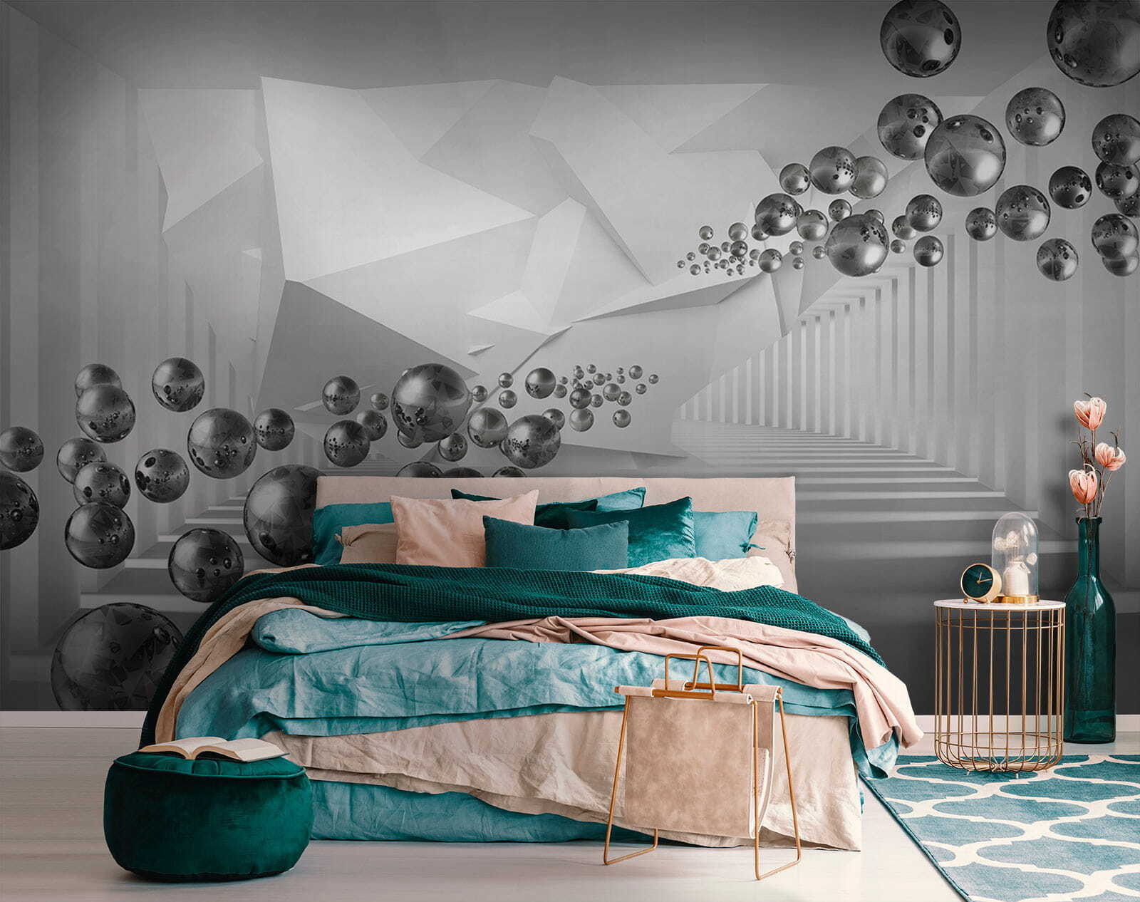 Papier peint Sphères flottantes dans un couloir géométrique. (UGS: u63734)