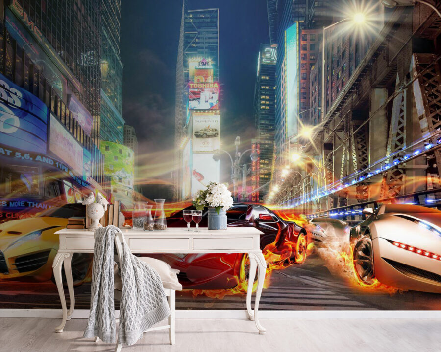 Vous avez un enfant qui est accro à la vitesse, ou peut-être êtes-vous vous-même un peu fou de voitures ? Jetez un coup d’œil à cette fresque murale incroyablement cool d’une voiture de sport rouge qui semble être en feu – littéralement ! C’est comme si vous vous arrêtiez au milieu d’une course à grande vitesse au cœur de la ville. Imaginez que votre fils ou votre fille se sente comme un mini-coureur chaque fois qu’il ou elle entre dans sa chambre. L’énergie et les flammes sautent pratiquement du mur, faisant monter l’adrénaline. Parfait pour une salle de jeux ou une cave à hommes. Préparez-vous à vous lancer dans un style de décoration sérieux !