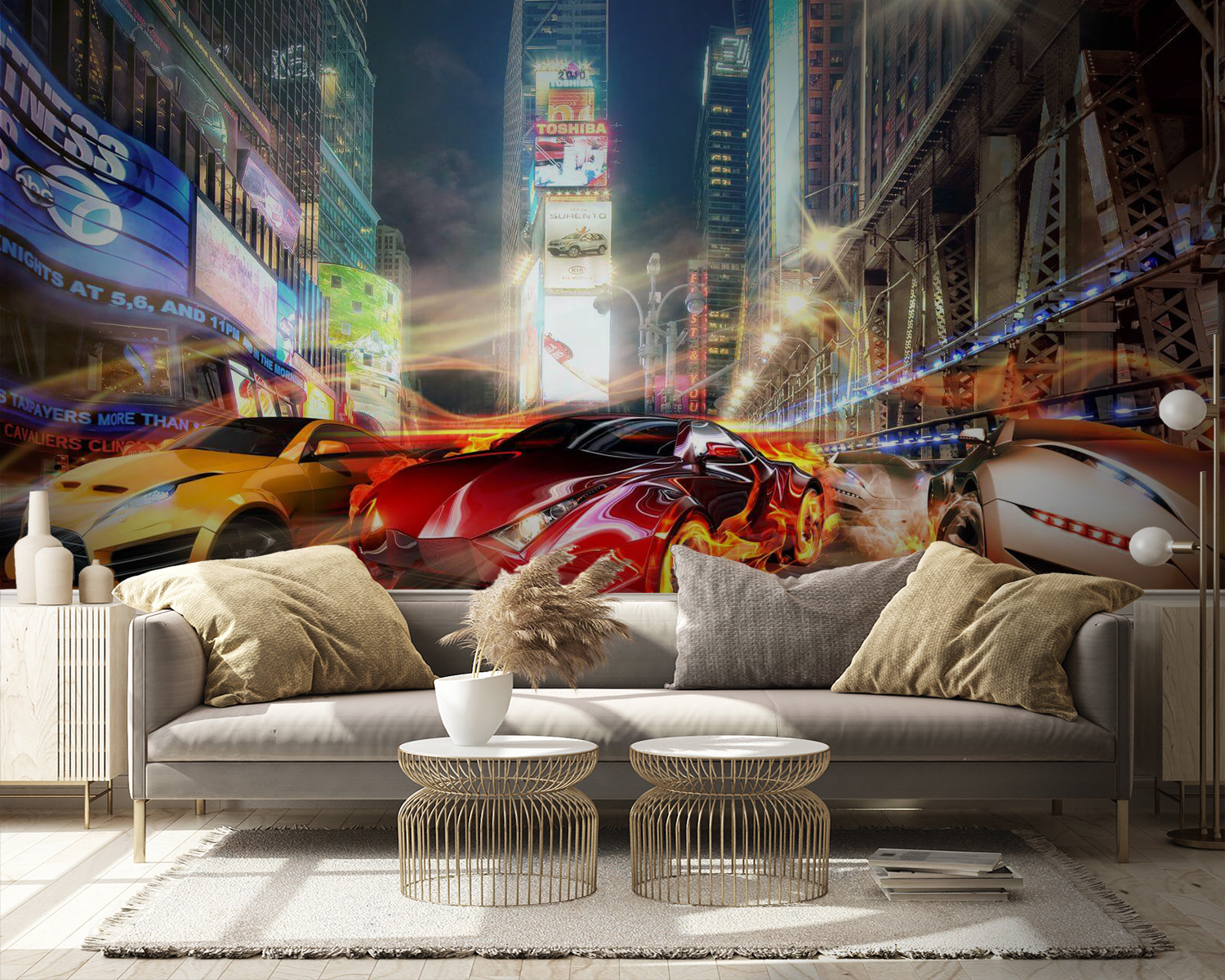 Vous avez un enfant qui est accro à la vitesse, ou peut-être êtes-vous vous-même un peu fou de voitures ? Jetez un coup d’œil à cette fresque murale incroyablement cool d’une voiture de sport rouge qui semble être en feu – littéralement ! C’est comme si vous vous arrêtiez au milieu d’une course à grande vitesse au cœur de la ville. Imaginez que votre fils ou votre fille se sente comme un mini-coureur chaque fois qu’il ou elle entre dans sa chambre. L’énergie et les flammes sautent pratiquement du mur, faisant monter l’adrénaline. Parfait pour une salle de jeux ou une cave à hommes. Préparez-vous à vous lancer dans un style de décoration sérieux !