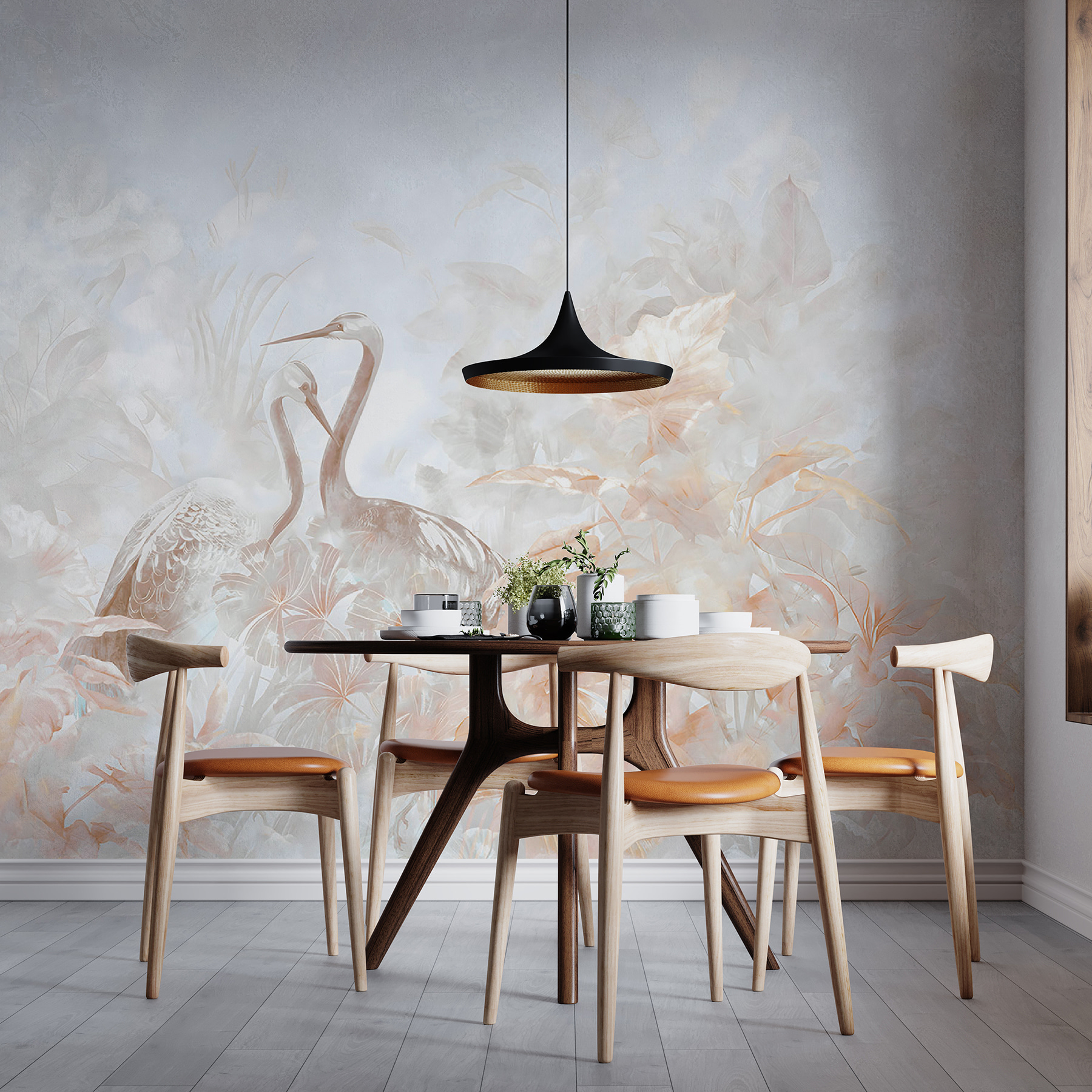 Imaginez une évasion sereine sur votre mur avec la peinture murale “Grues au milieu d’un feuillage luxuriant”. Il ne s’agit pas seulement d’un décor, mais d’une ambiance entière, parfaite pour tous ceux qui aiment l’élégance de la nature à l’intérieur. Deux grues gracieuses se mêlent à une mer de feuilles douces, créant une ambiance étonnante et tranquille. Les couleurs douces donnent l’impression d’un matin rêveur et brumeux dans un endroit exotique (sans avoir besoin de prendre l’avion). C’est comme si l’on appuyait sur le bouton pause de la vie et que l’on respirait un jardin frais et rafraîchissant. Cette peinture murale constitue une pièce maîtresse pour votre salon ou même pour une chambre à coucher paisible. Envie d’une dose quotidienne de zen ? Cette peinture murale est faite pour vous. De plus, elle ne manquera pas d’alimenter les conversations – qui n’aurait pas envie de parler d’une scène aussi paisible et belle dans sa propre maison ?