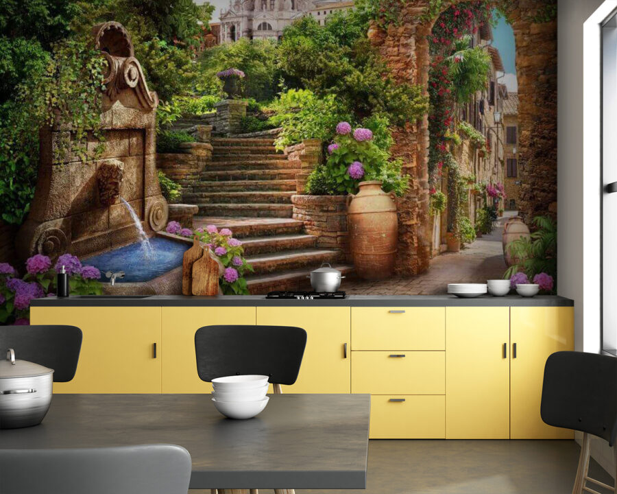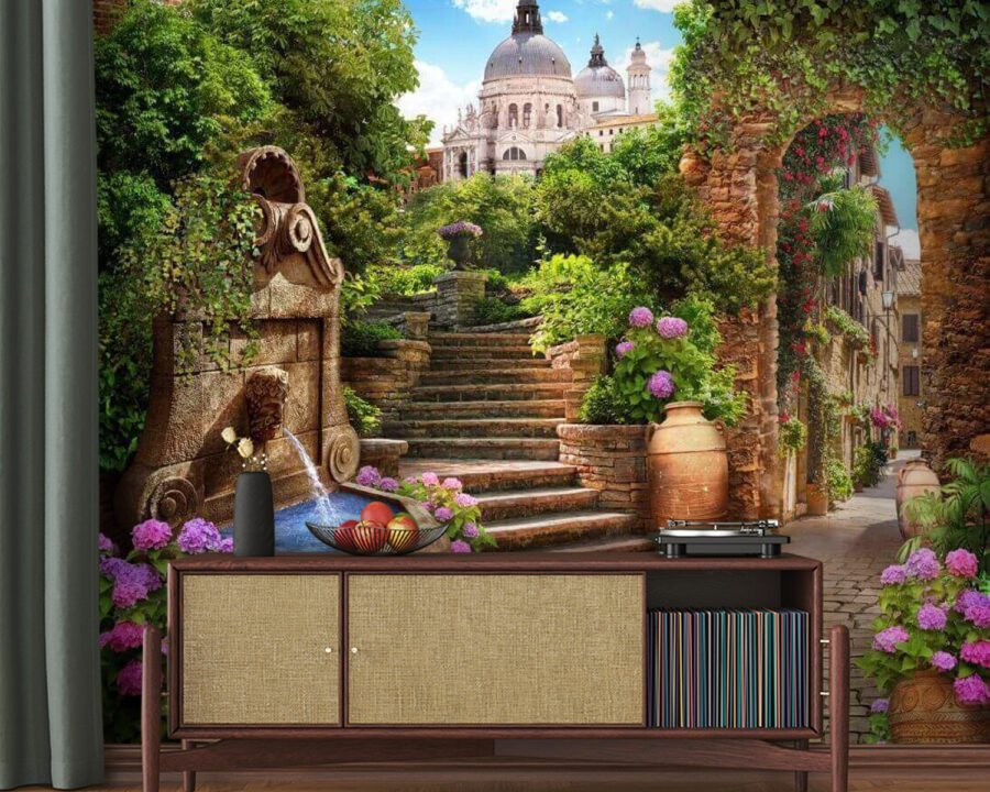 Transformez n’importe quel espace en une escapade de rêve grâce à cette peinture murale enchanteresse représentant un chemin de pierre serein, une fontaine bouillonnante et des fleurs vibrantes. Imaginez que vous entrez dans une escapade européenne confortable depuis votre salon ou votre chambre. Les sons apaisants de l’eau vous feront presque entendre de douces ondulations, tandis que les fleurs colorées ajoutent une touche de joie au paysage. C’est comme si vous trouviez un coin caché dans un village pittoresque, qui ne demande qu’à inspirer votre prochaine aventure. Parfait pour une touche de charme, il invite à la rêverie à chaque coup d’œil. Qui ne voudrait pas siroter un café au bord de cette fontaine ? C’est la chaleur et la fantaisie réunies en une seule pièce délicieuse.