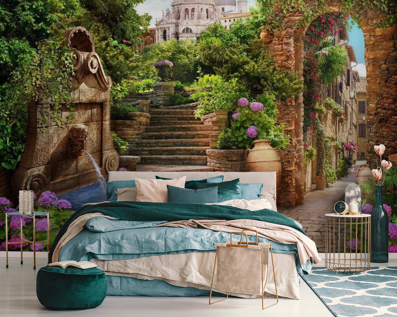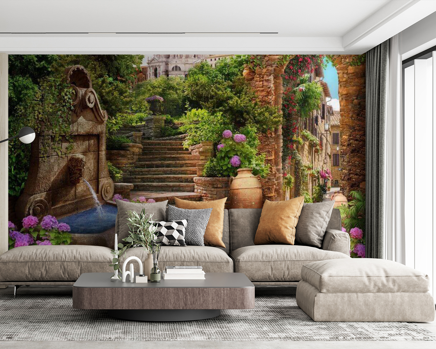 Transformez n’importe quel espace en une escapade de rêve grâce à cette peinture murale enchanteresse représentant un chemin de pierre serein, une fontaine bouillonnante et des fleurs vibrantes. Imaginez que vous entrez dans une escapade européenne confortable depuis votre salon ou votre chambre. Les sons apaisants de l’eau vous feront presque entendre de douces ondulations, tandis que les fleurs colorées ajoutent une touche de joie au paysage. C’est comme si vous trouviez un coin caché dans un village pittoresque, qui ne demande qu’à inspirer votre prochaine aventure. Parfait pour une touche de charme, il invite à la rêverie à chaque coup d’œil. Qui ne voudrait pas siroter un café au bord de cette fontaine ? C’est la chaleur et la fantaisie réunies en une seule pièce délicieuse.