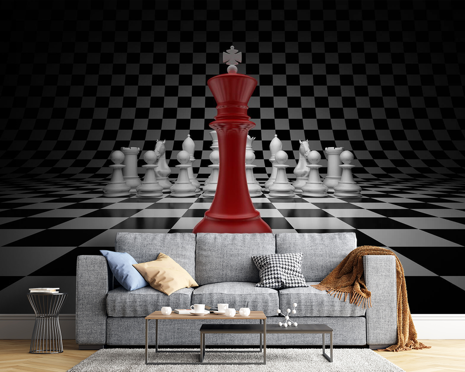 Transformez un mur en un champ de bataille artistique avec la “Pièce d’échecs rouge et blanche”. Cette peinture murale n’est pas seulement un dessin, c’est une déclaration. Imaginez : un roi d’un rouge éclatant se dressant face à une mer de pièces blanches sur une toile de fond classique à carreaux noirs et blancs. C’est comme si vous invitiez une partie d’échecs spectaculaire dans votre salon. Imaginez vos invités en train de s’émerveiller, se demandant pourquoi ils ont l’impression d’être entrés dans une galerie d’art. Parfait pour susciter des conversations ou même un match amical autour d’un café. Avec ses couleurs audacieuses, il rehaussera n’importe quel espace, le rendant à la fois vivant et étrangement sophistiqué. Votre mur est prêt à jouer le coup gagnant !