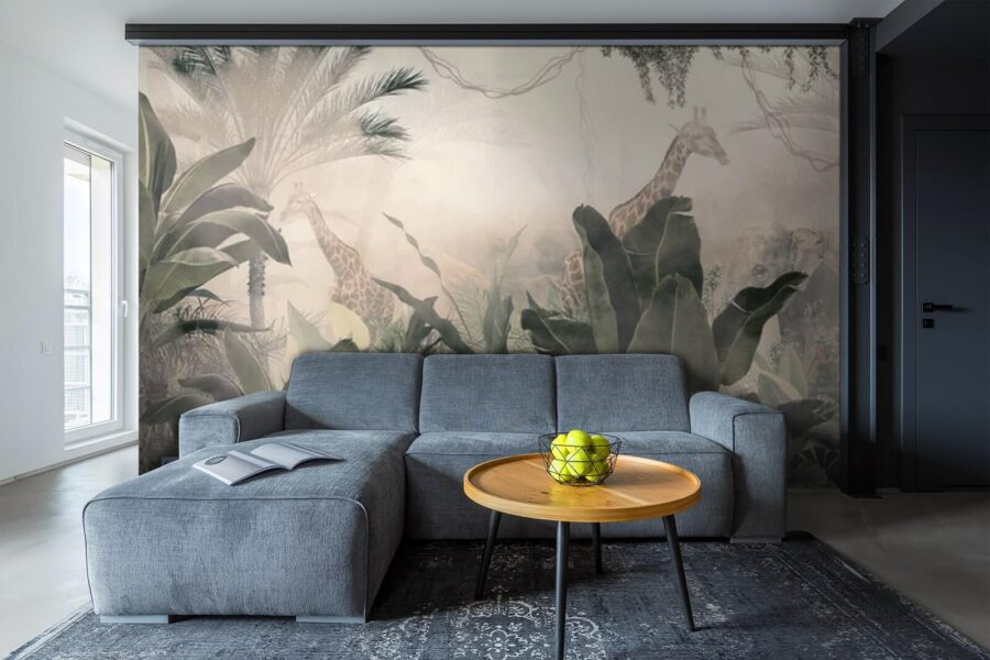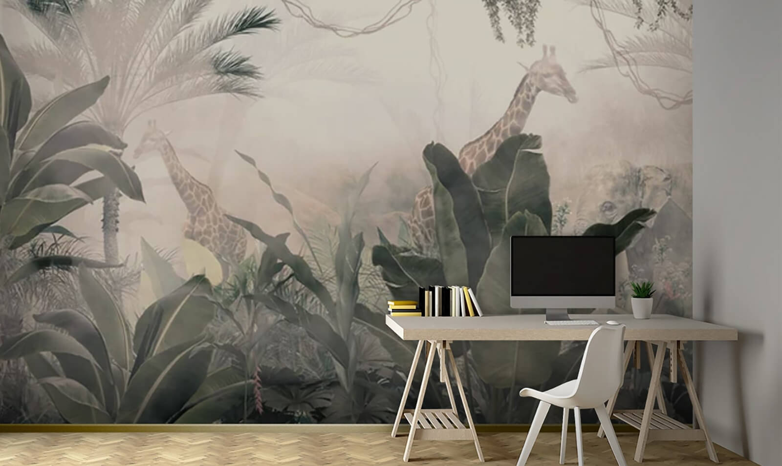 Transformez votre espace en une jungle fantaisiste grâce à cette fresque murale représentant de gracieuses girafes qui jettent un œil à travers une végétation luxuriante. C’est comme entrer dans un rêve où la nature règne en maître. Imaginez : vous sirotez votre café le matin, la lumière du soleil filtre à travers les rideaux, et une girafe sereine broute tranquillement des feuilles sur votre mur. Qui a besoin d’un safari, n’est-ce pas ? Les couches de feuillage créent une impression de profondeur, donnant une sensation d’espace aux petites pièces. C’est un sujet de conversation : vos invités s’arrêteront certainement pour l’admirer. Parfait pour les âmes aventurières ou tous ceux qui cherchent à s’évader du quotidien. Une petite touche de magie, chez vous !