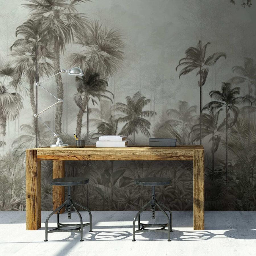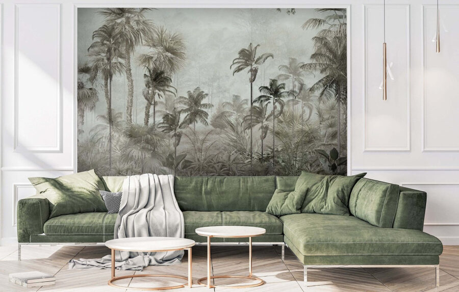 Transformez n’importe quelle pièce en un havre de paix grâce à cette superbe fresque murale représentant un groupe de palmiers apparaissant à travers une forêt brumeuse. C’est comme entrer dans une jungle de rêve sans jamais quitter votre maison. Les teintes douces et l’atmosphère brumeuse créent une ambiance calme et relaxante, parfaite pour les après-midis paresseux ou les soirées douillettes. Imaginez-vous lové dans un fauteuil avec un livre ou en train de siroter votre boisson préférée, tout en vous sentant enlacé par la nature. Sans oublier que cette fresque est un excellent sujet de conversation. Vos invités vous demanderont certainement d’où vient ce paradis serein ! Adoptez le côté sauvage de la décoration et laissez cette fresque vous transporter.