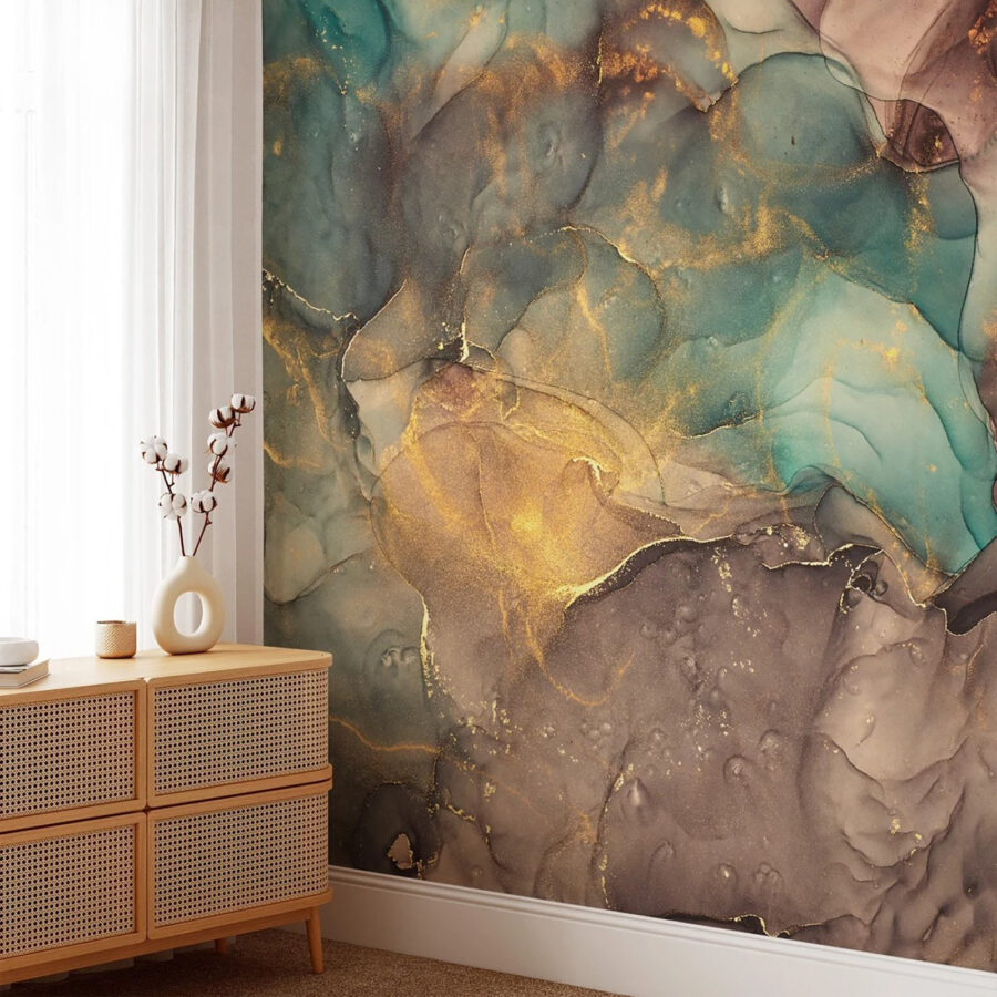 Transformez un mur terne en un point de mire époustouflant grâce à cette peinture murale présentant des textures de marbre abstraites et de riches accents sarcelle. Imaginez que vous entrez dans une pièce où les tourbillons de tons terreux chuchotent des histoires de la nature, invitant chaque invité à s’arrêter et à s’imprégner de l’ambiance. C’est comme avoir une œuvre d’art qui ne cesse d’évoluer – changez de point de vue et le design dansera avec vous. Parfaite pour un coin douillet ou un mur d’affirmation audacieux, cette peinture murale ajoute de la profondeur et de la personnalité. Elle pourrait bien vous inspirer un moment de zénitude après une longue journée. Alors, pourquoi ne pas laisser vos murs en dire long ?