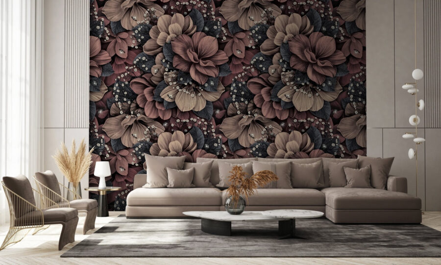 Imaginez ceci dans votre salon : un motif floral élégamment détaillé qui vous donne envie de le regarder toute la journée. Cette peinture murale présente un motif chaud et complexe qui semble presque vivant. Les couleurs riches se mélangent magnifiquement, créant un sentiment de profondeur qui vous attire. C’est comme si vous aviez un jardin luxuriant sur votre mur, sans avoir besoin de l’arroser.