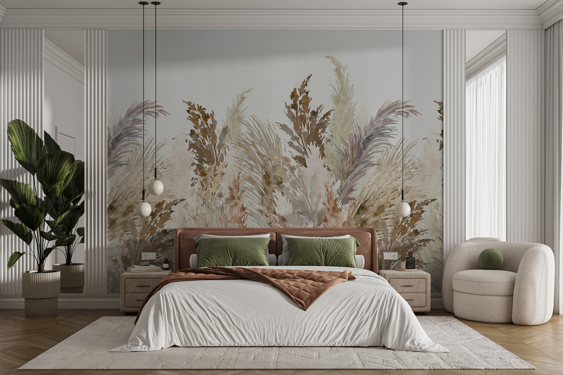 Papier peint Arrangement d’herbe de la pampa en aquarelle. (UGS: u71779)