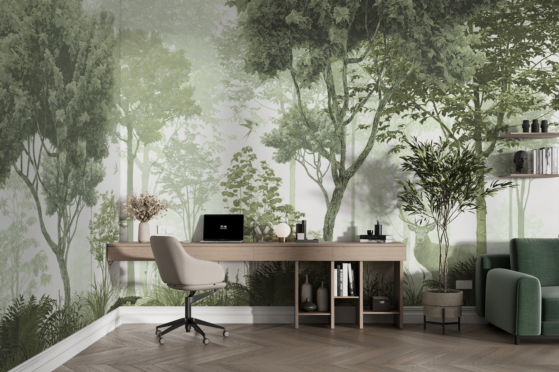 Transformez n’importe quel espace en une évasion sereine grâce à cette peinture murale enchanteresse représentant des cerfs dans une forêt paisible. Imaginez que vous vous réveillez chaque matin dans un bosquet doux et brumeux où la nature murmure des secrets. Les teintes douces et les détails complexes vous entraînent dans un royaume paisible, rendant vos murs vivants. Parfait pour un coin lecture confortable ou pour apporter du calme à un salon animé, il donne l’impression d’être en mini-vacances chaque jour. Imaginez-vous en train de siroter votre café tout en contemplant cette scène sereine. C’est la nature sans les insectes – c’est une victoire !