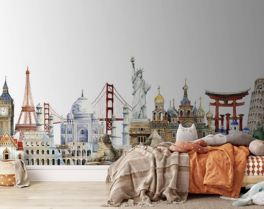 Transformez un mur vierge en une escapade de rêve grâce à cette aquarelle murale vibrante représentant des lieux emblématiques. Imaginez que vous sirotiez un café en contemplant la Tour Eiffel ou que vous rêviez du Taj Mahal. Cette peinture murale invite chaque visiteur à explorer les merveilles du monde depuis chez lui. Chaque coup de pinceau capture l’esprit du voyage, donnant l’impression d’une petite aventure dans votre salon. Cette peinture murale n’est pas qu’un simple décor ; elle suscite des histoires et des souvenirs chaleureux. Parfaite pour les âmes voyageuses ou pour tous ceux qui aiment un bon festin visuel – c’est comme une invitation ouverte à l’exploration !