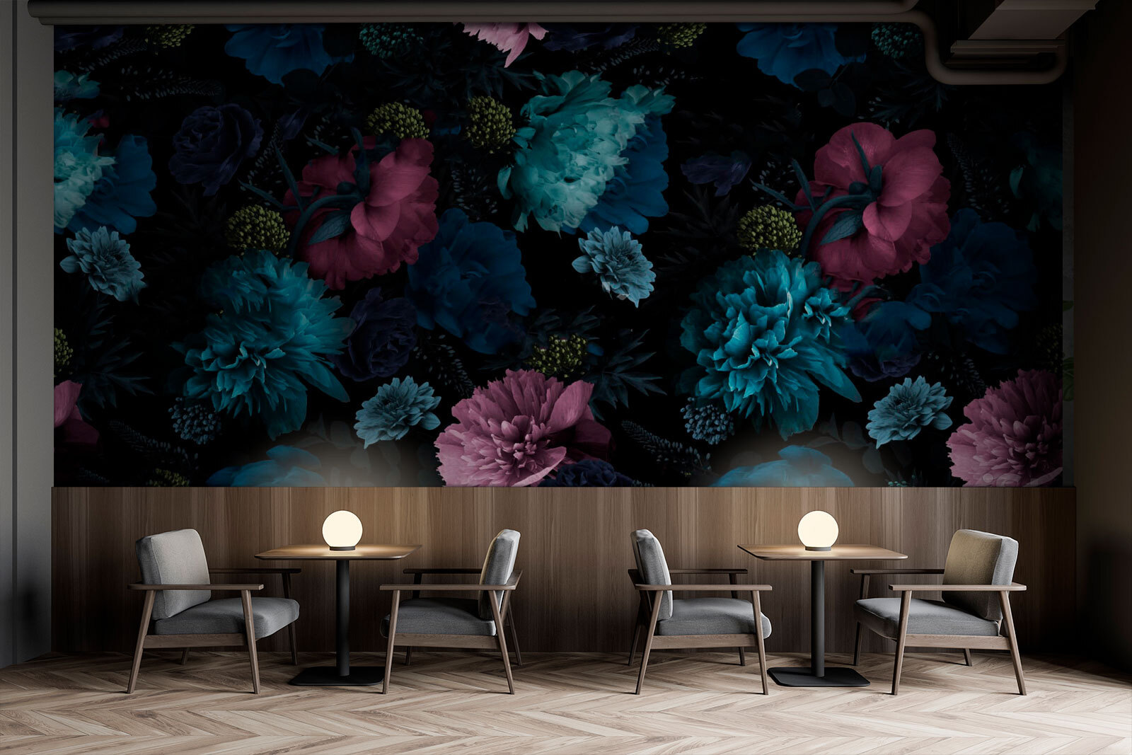 Transformez vos murs en un sanctuaire fleuri avec cette superbe peinture murale composée de fleurs colorées sur une toile de fond sombre et profonde. C’est comme une fête de jardin dans votre salon – plein de pivoines luxuriantes et de charmantes fleurs qui semblent danser sur le mur ! Imaginez que vous sirotiez votre café du matin pendant que ces fleurs vibrantes illuminent votre journée. Les couleurs riches créent une ambiance chaleureuse et accueillante dans n’importe quel espace. Vos amis ne manqueront pas de vous complimenter sur l’aspect vivant de votre pièce. Parfait pour égayer un coin terne ou pour faire une déclaration audacieuse – car qui n’aime pas un peu d’ambiance florale dans sa vie ?
