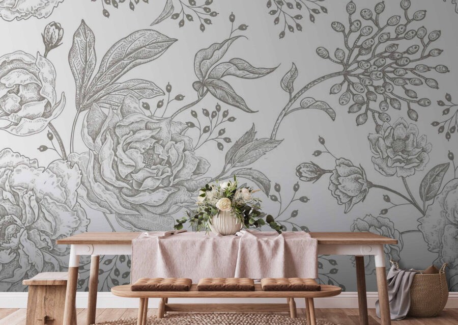 Transformez votre espace avec cette superbe fresque murale aux motifs floraux délicats dans des tons doux. Imaginez-vous vous réveiller au milieu d’une cascade de pivoines et de boutons délicats, comme si la nature elle-même avait décidé de s’installer sur votre mur. Cette fresque ne se contente pas d’embellir votre pièce, elle lui apporte une bouffée d’air frais. Parfaite pour créer un coin douillet ou une ambiance sereine dans une chambre à coucher, elle invite au calme avec ses couleurs douces et ses détails complexes. De plus, elle est un excellent sujet de conversation ! Vos amis vous demanderont où vous avez trouvé ce chef-d’œuvre floral de rêve. Apportez un peu de la magie du jardin à l’intérieur de votre maison, qui n’en rêverait pas ?