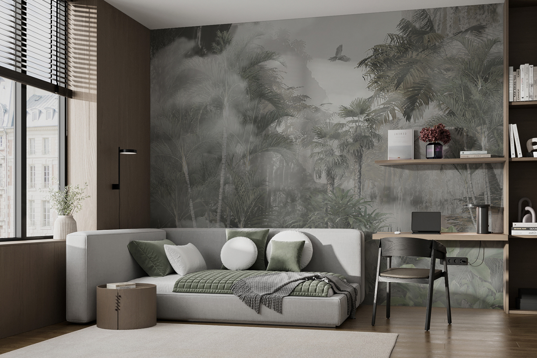 Voyez exactement à quoi ressemblera votre espace avec un nouveau papier peint avant d’acheter. Visualisation professionnelle par des designers experts, sans aucun coût ni obligation d’achat.
