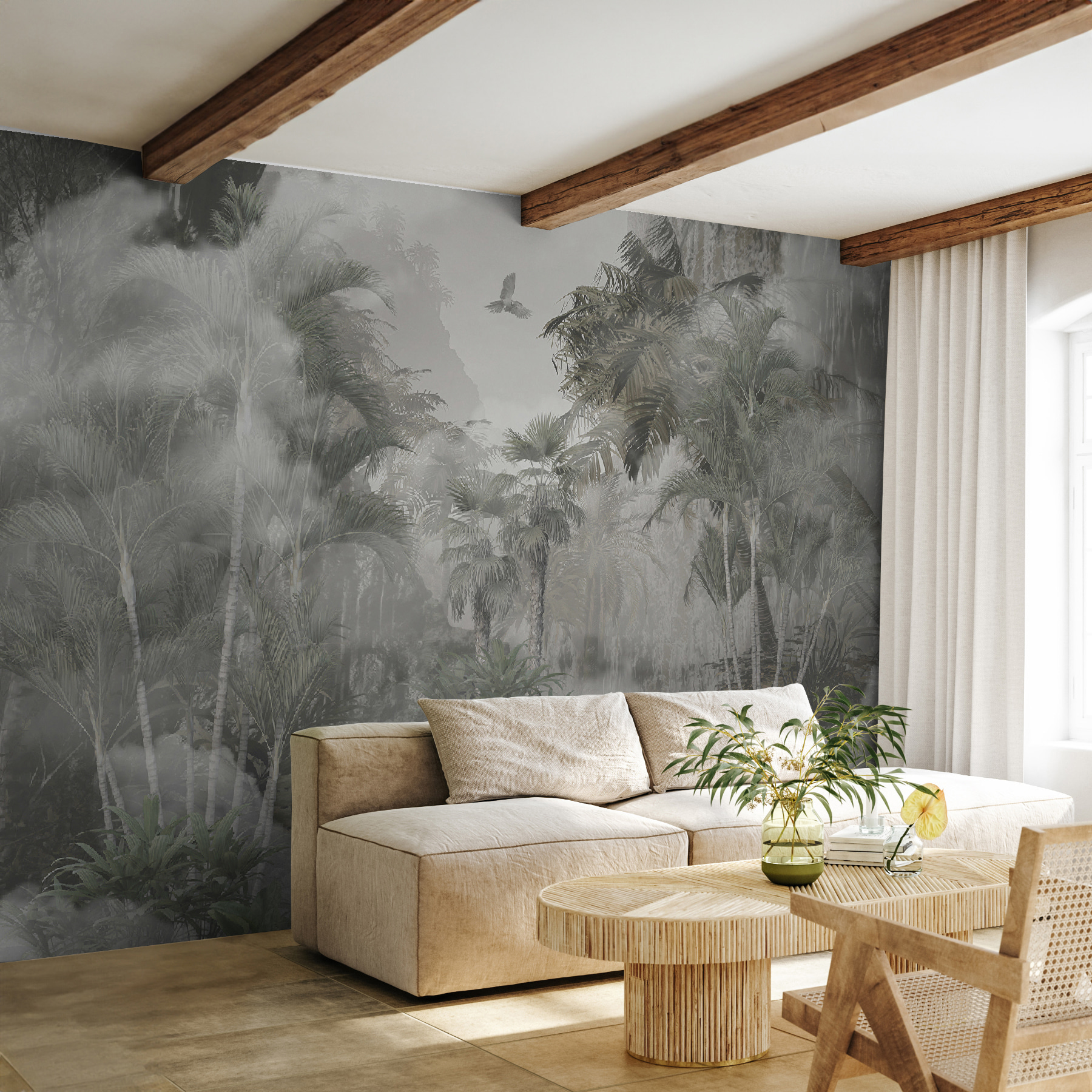 Parfaite pour les salons, les chambres à coucher ou même un coin lecture confortable, cette peinture murale ajoute une énergie calme, presque paisible, à n’importe quelle pièce. Les invités pourraient y regarder à deux fois, se demandant s’ils sont tombés sur une escapade exotique. Et honnêtement, il est difficile de ne pas se perdre dans les détails, en repérant les nouvelles feuilles ou le subtil changement de lumière à chaque fois que l’on regarde.