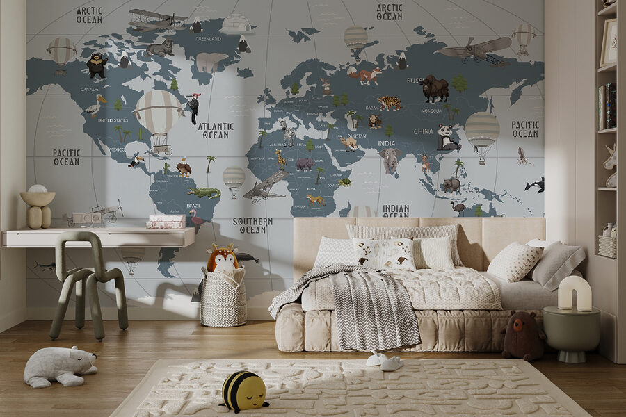 Imaginez un monde où l’aventure s’envole, dans le confort de votre chambre. Cette peinture murale “Montgolfière dans le ciel” est comme un billet pour le voyage, parfait pour les petits explorateurs et les rêvasseurs. Avec de charmantes montgolfières flottant au-dessus d’une carte ludique, les enfants peuvent voyager à travers le monde sans jamais avoir à faire leurs valises. Imaginez les rires et l’excitation lorsqu’ils désignent les jungles, les océans et les amis à fourrure. Ce n’est pas seulement un décor, c’est une toile de fond inspirante pour les histoires, les rires et l’imagination. Les murs deviennent des fenêtres sur des contrées lointaines, et qui n’aimerait pas cela ? Parfaits pour une chambre d’enfant ou une salle de jeux, ils apportent chaleur et fantaisie. Que l’aventure commence !