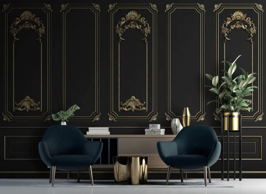 Transformez n’importe quelle pièce en sujet de conversation grâce à ces élégants panneaux noirs ornés de bordures. Ils apportent une touche de sophistication sans pour autant être guindés. Imaginez des soirées douillettes passées à discuter autour d’un verre de vin ou un club de lecture où tout le monde ne peut s’empêcher d’admirer la toile de fond. Il a un aspect riche et classique qui se marie aussi bien avec un décor moderne qu’avec un décor vintage. Les invités seront frappés par la façon dont un simple mur peut apporter une telle profondeur et un tel style à un espace. C’est comme si vous habilliez vos murs d’une tenue sur mesure : nette, chic et inoubliable ! Laissez les murs parler pendant que vous vous asseyez et appréciez les compliments.