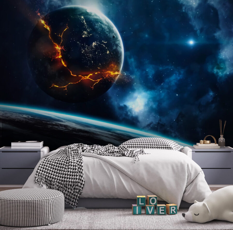 Imaginez que vous vous réveillez tous les jours devant cette scène cosmique époustouflante – c’est vraiment génial ! Notre peinture murale “Planète avec un feu en arrière-plan” apporte la beauté dramatique d’une galaxie directement dans votre salon (ou votre bureau, ou tout autre endroit où vous avez envie d’ajouter une touche céleste). Cette peinture murale n’est pas seulement d’un éclat saisissant – elle semble presque vivante avec cette planète enflammée crépitant contre les bleus profonds et mystérieux de la galaxie. C’est comme si vous aviez une fenêtre sur un autre univers, suscitant l’émerveillement, la curiosité et peut-être un peu de rêverie sur des aventures lointaines. Que vous soyez passionné d’astronomie ou que vous aimiez simplement une décoration audacieuse et unique, cette pièce ne manquera pas d’alimenter les conversations. Vos invités pourraient même se sentir un peu plus connectés au cosmos. Et soyons honnêtes, qui n’aurait pas besoin d’un peu plus de cette magie dans sa vie ? Parfait pour ceux qui apprécient l’immensité impressionnante de l’espace avec une touche de feu !