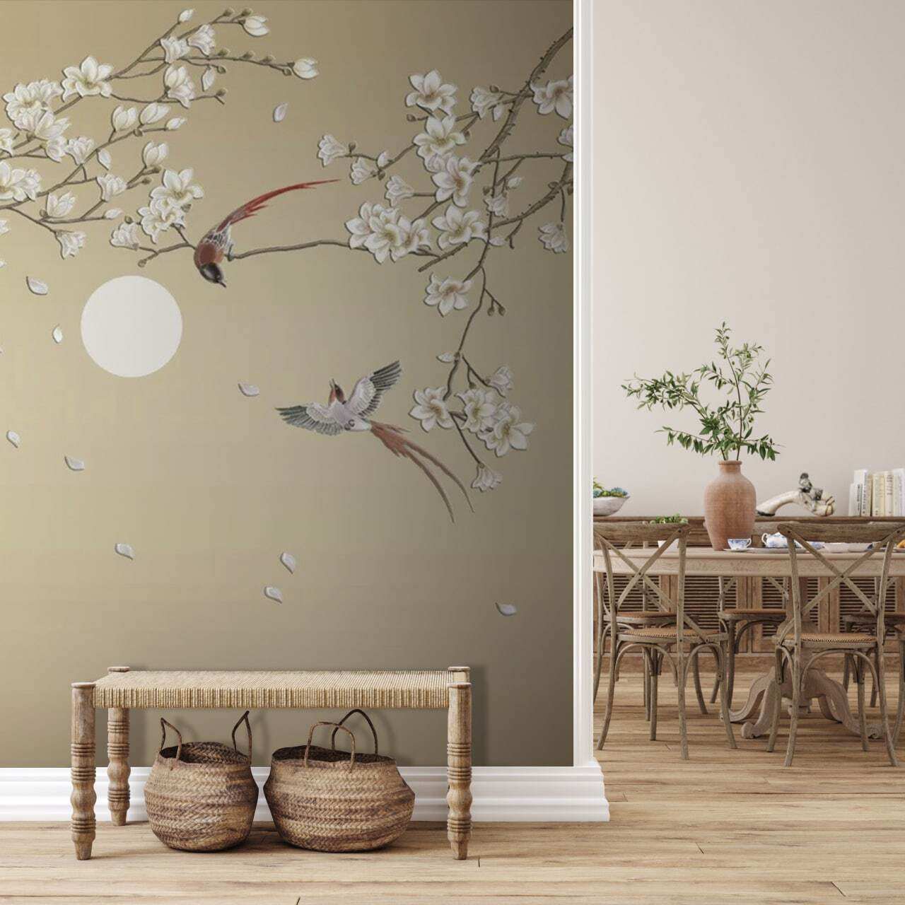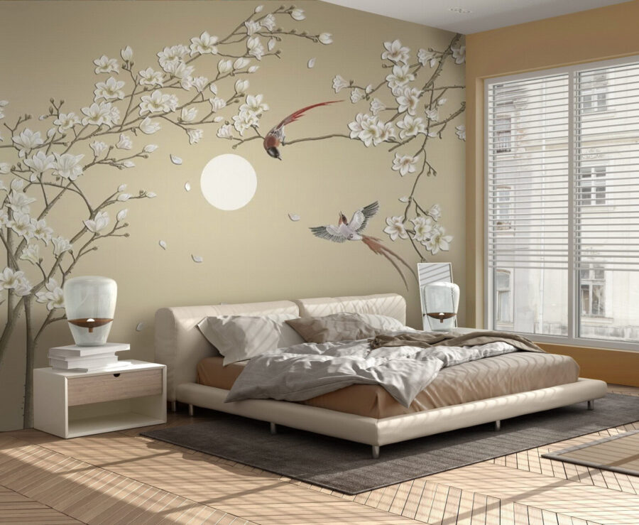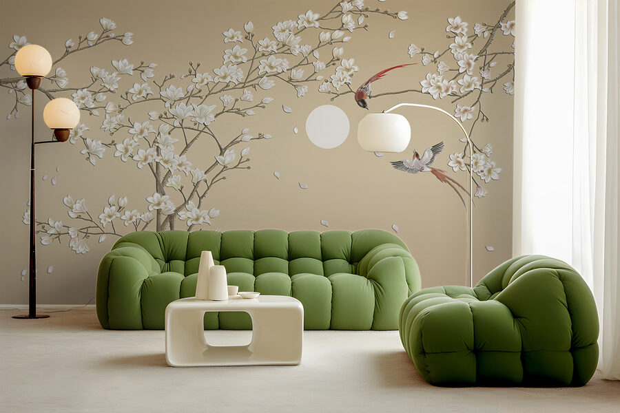 Imaginez : Vous rentrez chez vous après une longue journée, vous vous installez sur votre canapé et vous vous laissez emporter par la scène paisible de la peinture murale. Les oiseaux en plein vol vous font presque sentir une douce brise et entendre le léger bruissement des feuilles. Des amis passent par là ? Ils seront probablement enchantés, voire légèrement envieux, de cette œuvre d’art unique.