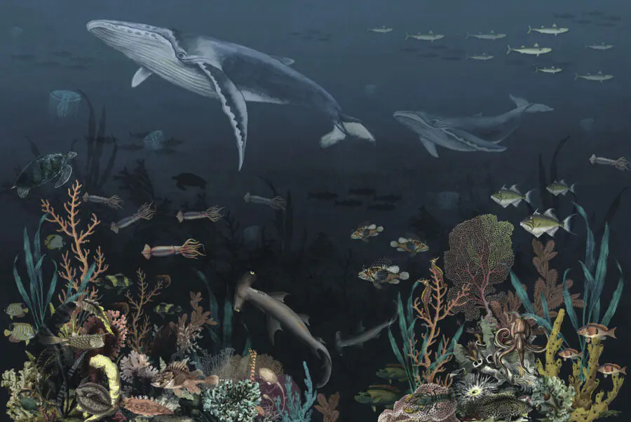 Plongez dans un monde d’émerveillement avec cette peinture murale captivante de baleines glissant gracieusement dans les profondeurs ! Imaginez : vous entrez dans une pièce et voilà qu’une baleine majestueuse nage aux côtés de poissons colorés, de tortues de mer et de coraux éclatants. Ce tableau procure instantanément un sentiment de calme et d’aventure. Parfaite pour une chambre d’enfant ou un espace inspiré du bord de mer, cette peinture murale stimule l’imagination et vous fait rêver d’escapades océaniques. Imaginez les histoires qu’il pourrait raconter ! Que ce soit à l’heure du jeu ou du coucher, cette peinture murale plante le décor d’innombrables aventures aquatiques – et qui ne voudrait pas de cette magie sur ses murs ? Vous aurez l’impression d’avoir un petit bout d’océan chez vous.