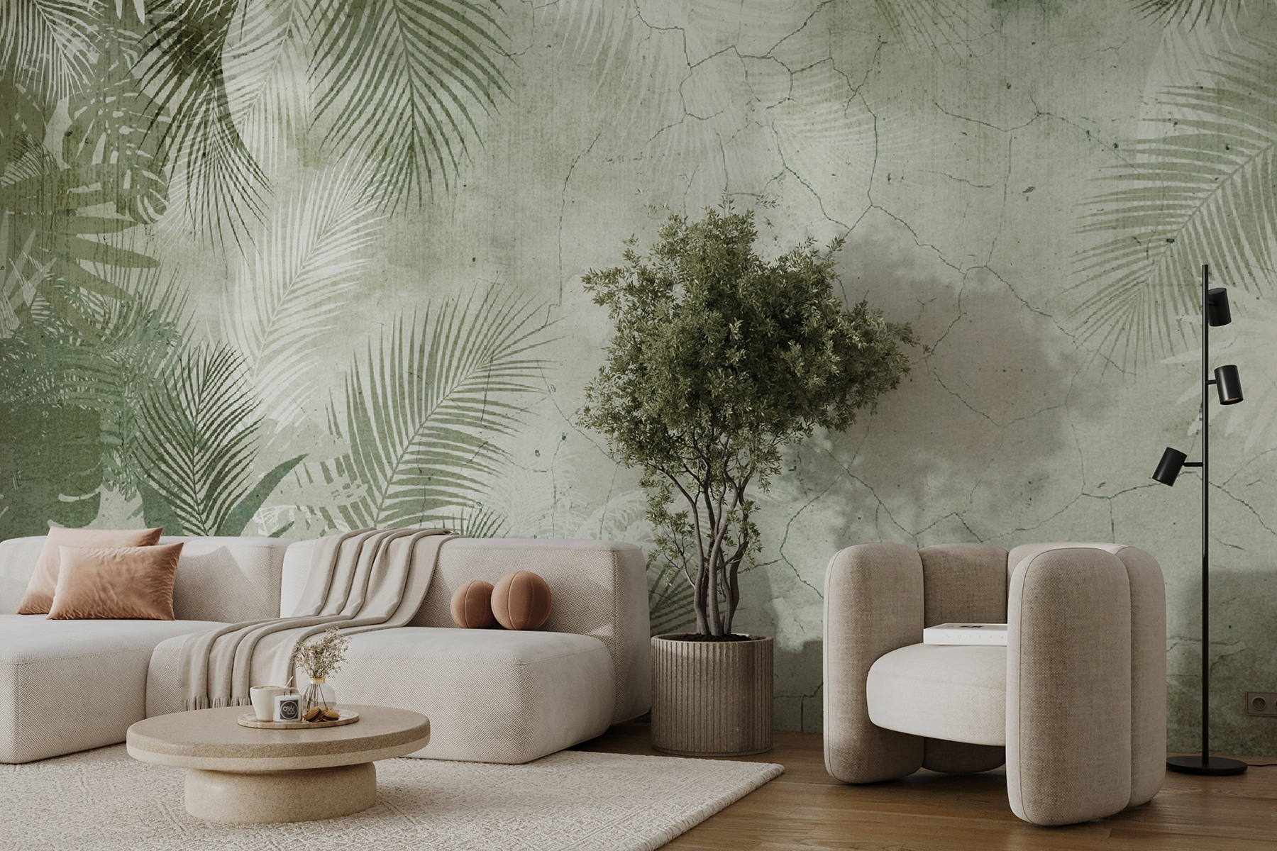 Transformez votre espace avec cette ravissante peinture murale représentant des feuilles tropicales étalées sur un fond doux et texturé. Imaginez que vous entrez dans une pièce qui vous donne instantanément l’impression de vous évader dans une île paradisiaque – c’est comme si vous apportiez une petite tranche de nature à l’intérieur. Les verts subtils et les tons terreux créent une ambiance accueillante qui vous donnera peut-être l’impression de vous prélasser sous les palmiers. Parfaite pour un coin lecture confortable ou un espace de vie animé, cette peinture murale invite à des moments de détente et inspire des rêves d’aventures ensoleillées. Illuminez vos murs et laissez l’essence apaisante des tropiques s’épanouir dans votre maison. Qui aurait cru qu’une peinture murale pouvait faire tout cela ?