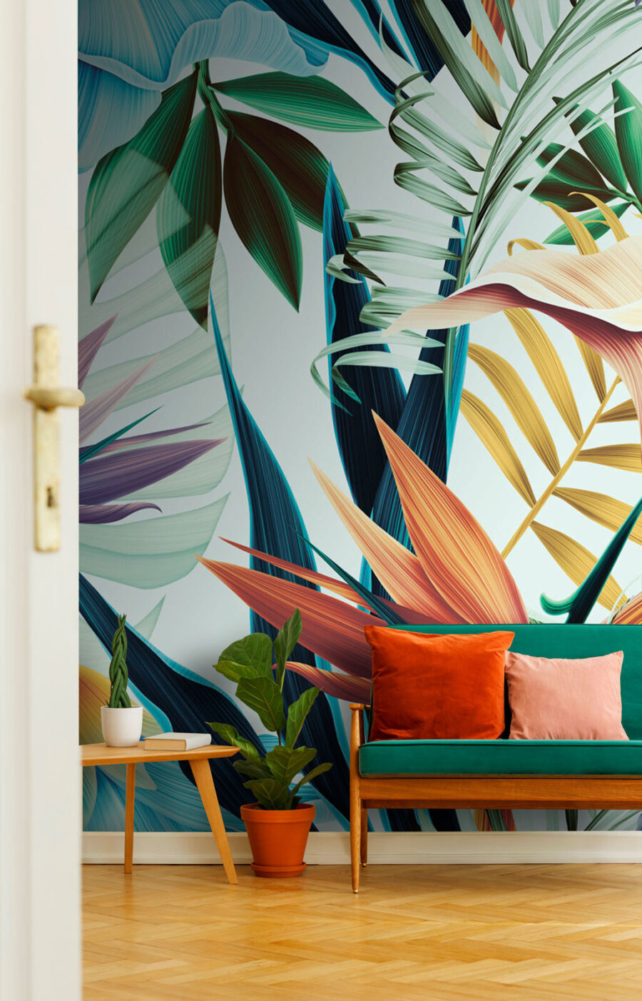 Imaginez que vous sirotiez votre café du matin sur fond de feuillage vibrant – vous avez l’impression d’être dans une jungle tropicale, directement dans votre salon. Chaque feuille et chaque fleur semble avoir été peinte par un artiste botaniste passionné par les couleurs vives et éclatantes. Il ne s’agit pas d’un simple papier peint, mais d’une expérience qui insuffle de la vie et une touche d’exotisme dans votre espace.
