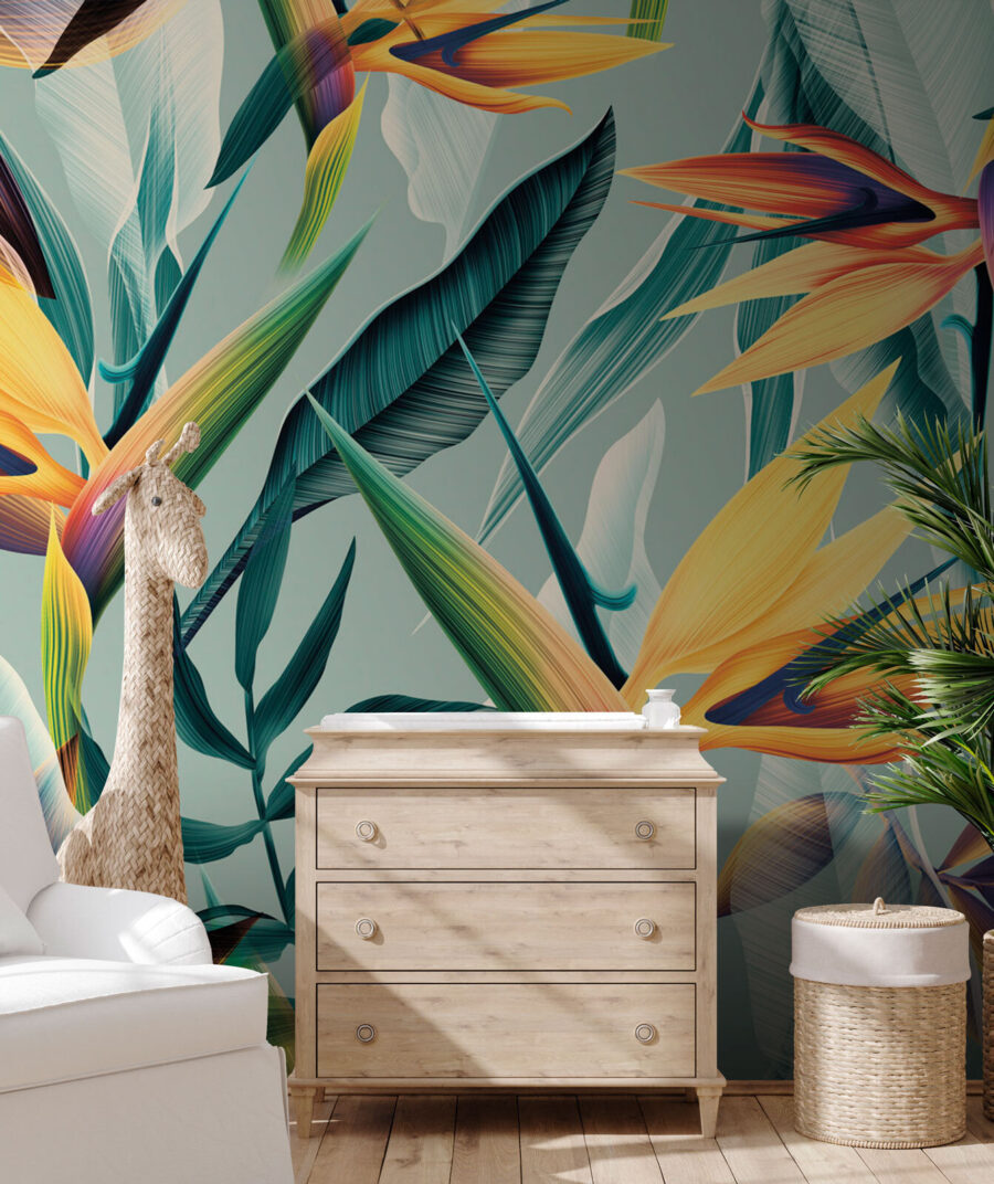 Vous avez un penchant pour les décors uniques ? Jetez un coup d’œil à la peinture murale “Birds of Paradise”. Il ne s’agit pas seulement d’une œuvre, mais d’une expérience, comme si vous pénétriez dans une jungle vibrante et paradisiaque. Imaginez que vous vous réveillez tous les jours avec ces couleurs hypnotiques et ce feuillage complexe ! Elle fait partie de notre collection Designer Wallpaper, qui associe l’art moderne à la beauté sauvage de la nature.
