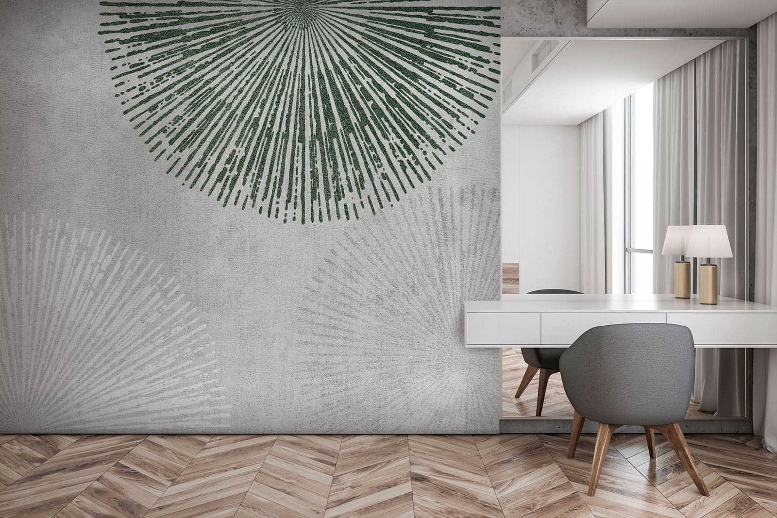 Transformez votre espace avec cette peinture murale captivante qui présente des motifs radiaux ludiques sur une toile de fond unique. Imaginez : un salon qui ressemble moins à la vieille garçonnière de votre cousin qu’à un café artistique de la ville. Les verts et les blancs doux créent une atmosphère paisible qui permet de se détendre après une longue journée. Les clients seront attirés, leur curiosité piquée. C’est comme flirter avec la géométrie – audacieuse, amusante, mais sans effort de style. Vous vous surprendrez peut-être à rêvasser en la regardant, chaque petit détail éveillant votre imagination. Parfait pour ceux qui veulent une touche de chic sans chichis.