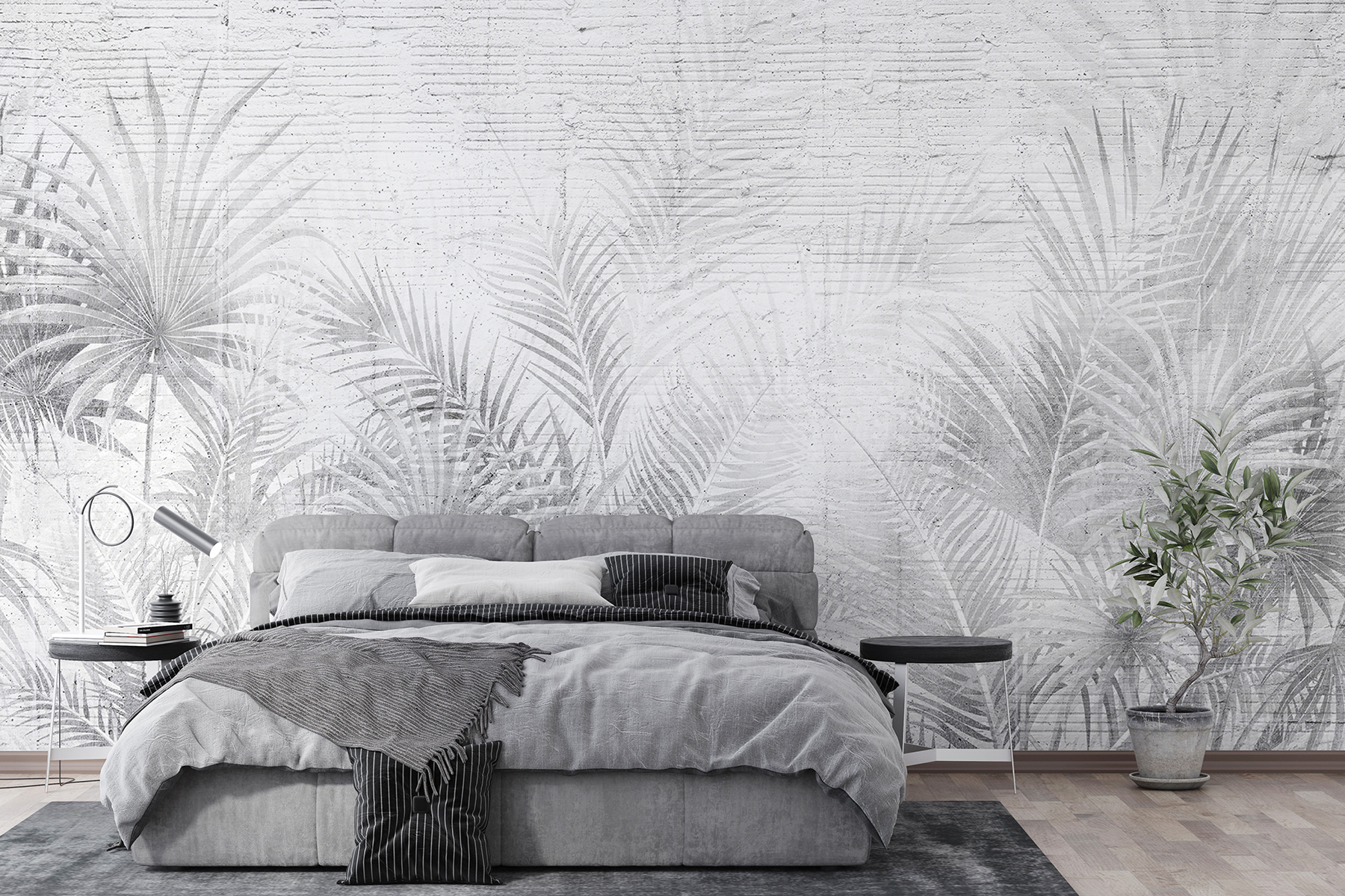 Vous voulez donner un coup de jeune à votre espace ? Jetez un coup d’œil à ce superbe “papier peint gris et blanc avec feuilles de palmier”. Il a cette ambiance cool et décontractée qui est d’une certaine manière tout à fait chic. Le mélange de gris et de blanc est très polyvalent, il se marie donc très bien avec pratiquement tout ce que vous avez déjà. De plus, ces délicates feuilles de palmier ? Elles ajoutent juste la bonne touche d’ambiance tropicale sans être trop voyantes. Imaginez que vous entrez dans votre chambre et que vous avez l’impression de pénétrer dans une oasis sereine et branchée. Idéale pour les salons, les chambres à coucher ou même un bureau à domicile élégant, cette peinture murale donnera de l’éclat à n’importe quel mur. C’est comme si vous donniez à votre mur une bouffée d’air frais. Croyez-moi, vous allez l’adorer.