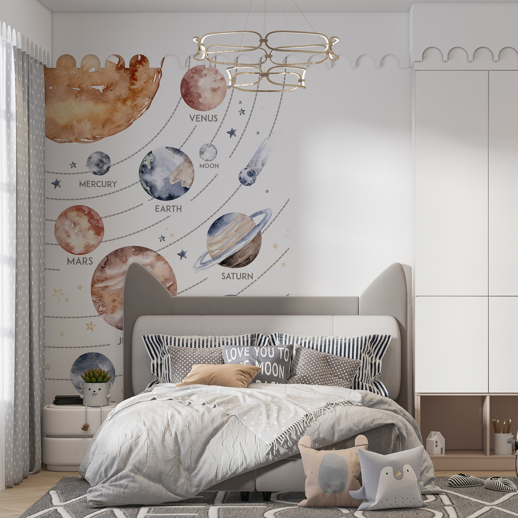 Imaginez des heures de sommeil sous la douce lueur des anneaux de Saturne, ou des heures de jeu animées sous le regard de Mercure et de Jupiter. Il s’agit d’une ambiance artistique apaisante qui convient parfaitement – pas d’affiches éducatives rigides et ennuyeuses ici. Il s’agit simplement d’une pièce magnifique et unique qui apporte une touche de magie galactique dans votre maison. Qu’il s’agisse d’embellir une chambre d’enfant ou d’ajouter du charme à une salle de jeux, cette peinture murale est un excellent choix. 🌟