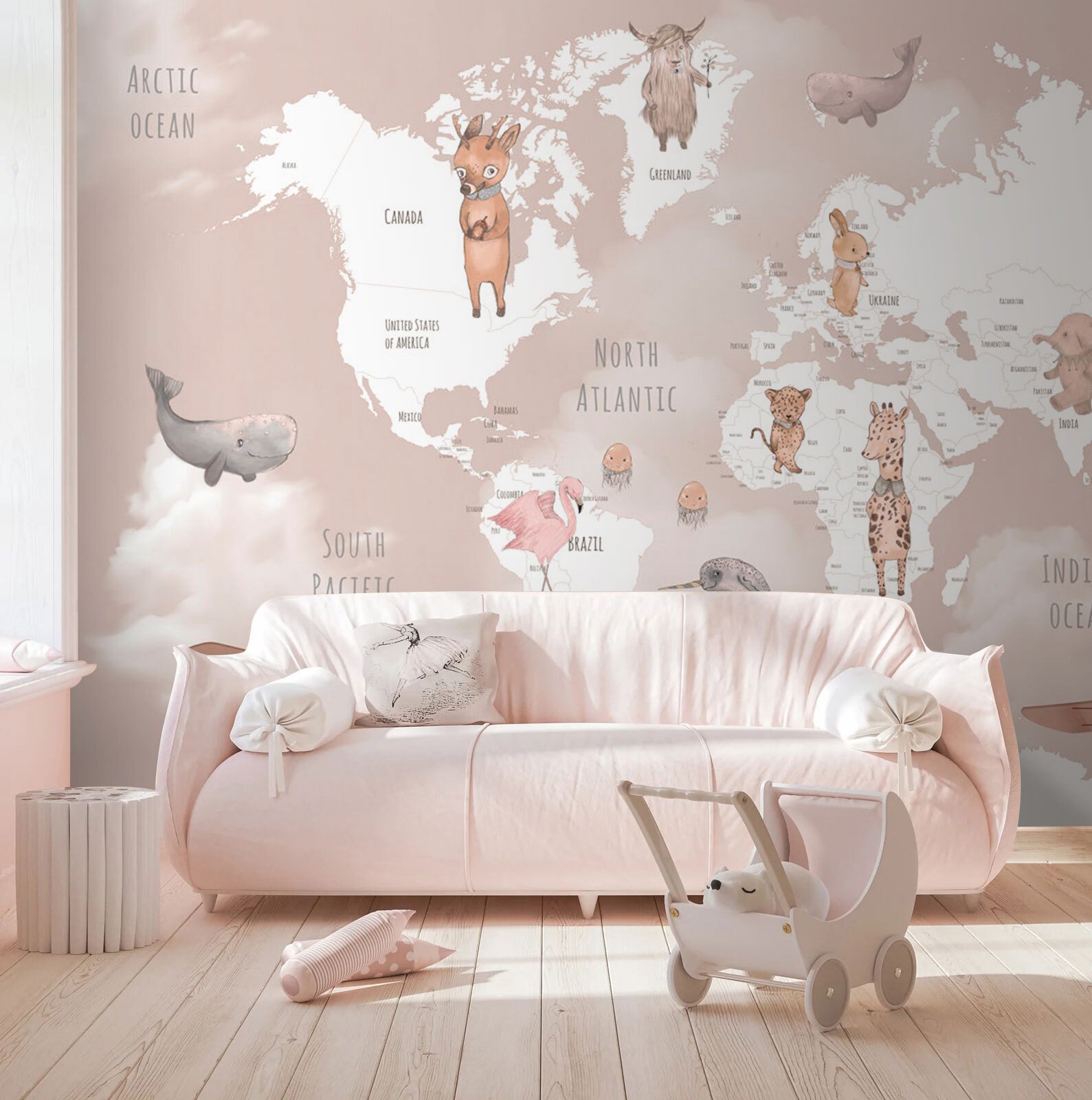 Vous cherchez quelque chose pour embellir la chambre de votre enfant ? Jetez un coup d’œil à cette adorable peinture murale, “Cartoon of a Deer” (dessin animé d’un cerf). Parfaite pour ajouter une touche ludique à n’importe quel espace, il ne s’agit pas seulement d’une jolie image, mais d’une carte du monde entière parsemée d’animaux fantasques. Imaginez une girafe curieuse accueillant votre enfant tous les matins – c’est ainsi que l’on suscite l’aventure !