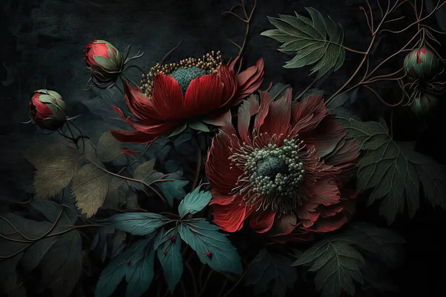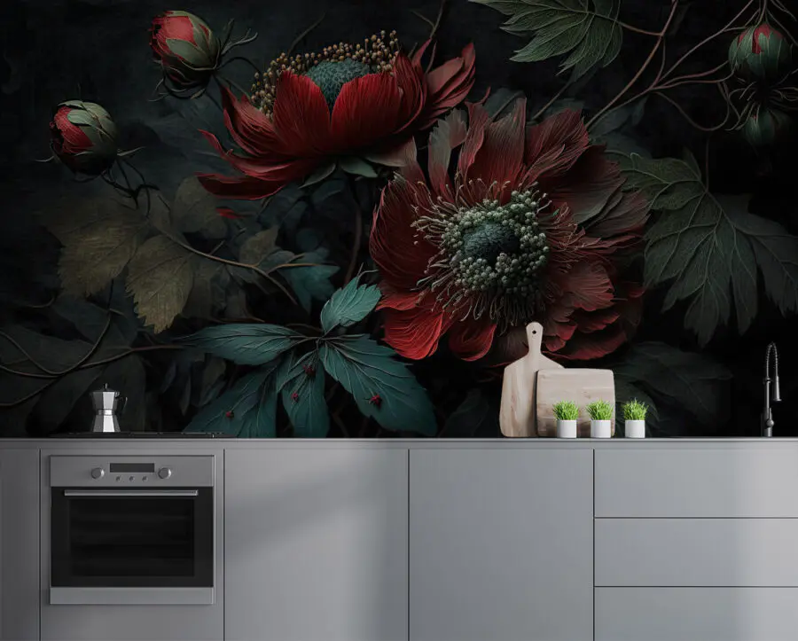Imaginez que vous entrez dans une pièce où se trouve cette superbe peinture murale – des fleurs vibrantes éclatant sur un fond sombre et morose. C’est comme si vous aviez un morceau de forêt enchantée dans votre maison. Le contraste est tout simplement incroyable, n’est-ce pas ? Les fleurs sont si éclatantes qu’on croirait presque pouvoir les toucher.