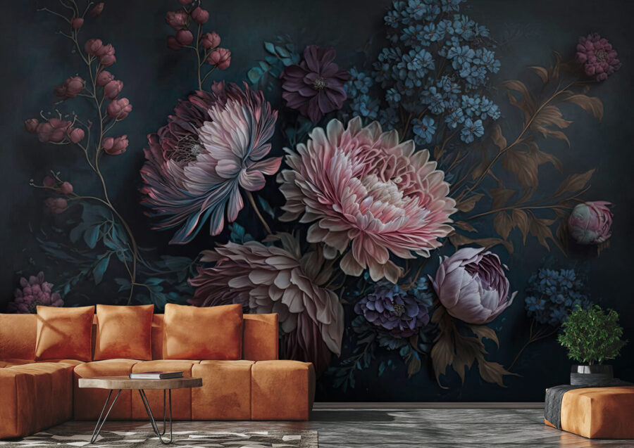 Papier peint Arrangement floral vibrant dans des tons sombres. (UGS: u75407)