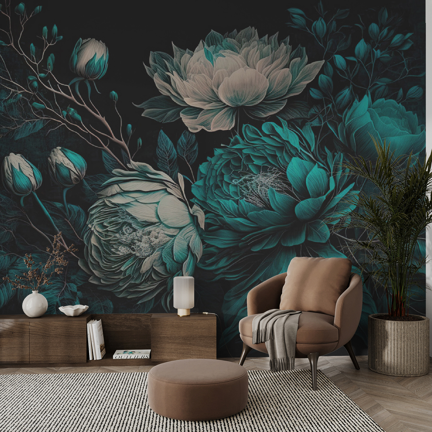 1 avis pour Papier peint Des fleurs vibrantes s’épanouissent dans des teintes sarcelles