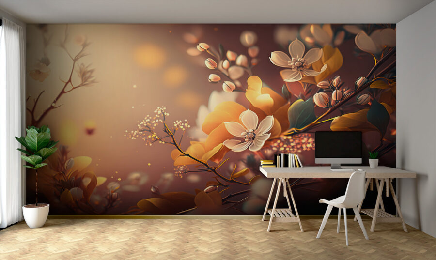 Imaginez que vous entrez dans une pièce dont les murs sont ornés de délicates fleurs aux couleurs chaudes. Cette peinture murale “Delicate Blossoms” transforme n’importe quel espace en un havre de paix floral et lumineux. Il est parfait pour les jours gris de l’hiver, lorsqu’une touche de printemps ressemble à un câlin chaleureux de la part d’un ami. Les teintes douces des jaunes, des oranges et des verts subtils dansent sur la peinture murale, ajoutant de la profondeur et une douce sensation de mouvement. C’est comme si vous aviez un jardin qui ne se fane jamais, juste là dans votre salon. Imaginez un coin lecture confortable ou même une chambre à coucher – chaque coup d’œil à ces fleurs est un doux rappel de la beauté de la nature. De plus, il y a quelque chose d’accueillant et d’apaisant dans ce décor. Cette peinture murale ne se contente pas de décorer un mur, elle apporte un sentiment de sérénité et de joie douce à votre intérieur. Une dose quotidienne de plaisir floral sans arrosoir ! 🌸