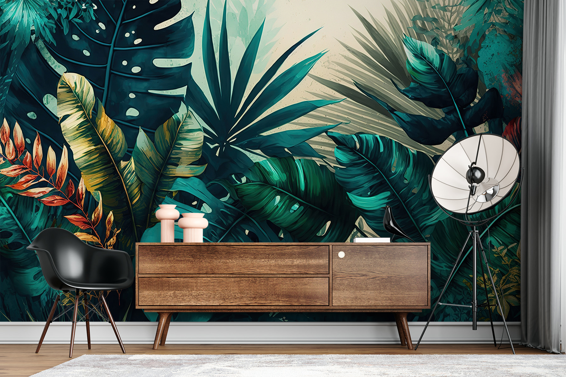 Avez-vous déjà eu envie de vous promener dans un paradis tropical luxuriant sans quitter votre salon ? Cette peinture murale, nommée avec fantaisie “Vibrant tropical foliage in harmony”, pourrait être votre portail magique personnel. Imaginez : vous sirotez votre café du matin en profitant de l’ambiance sereine des feuilles de palmier surdimensionnées et du feuillage coloré qui semblent danser ensemble sur vos murs. L’ambiance est vraiment celle de la jungle, mais sans les insectes. Idéal pour tous ceux qui ont envie d’un peu de nature mais préfèrent rester à l’intérieur. Vous aurez l’impression d’être Tarzan – ou Jane – en vous baladant dans la verdure, ou vous laisserez simplement les couleurs audacieuses rafraîchir votre espace. Parfait pour ce mur qui semble un peu terne, vous ne trouvez pas ?