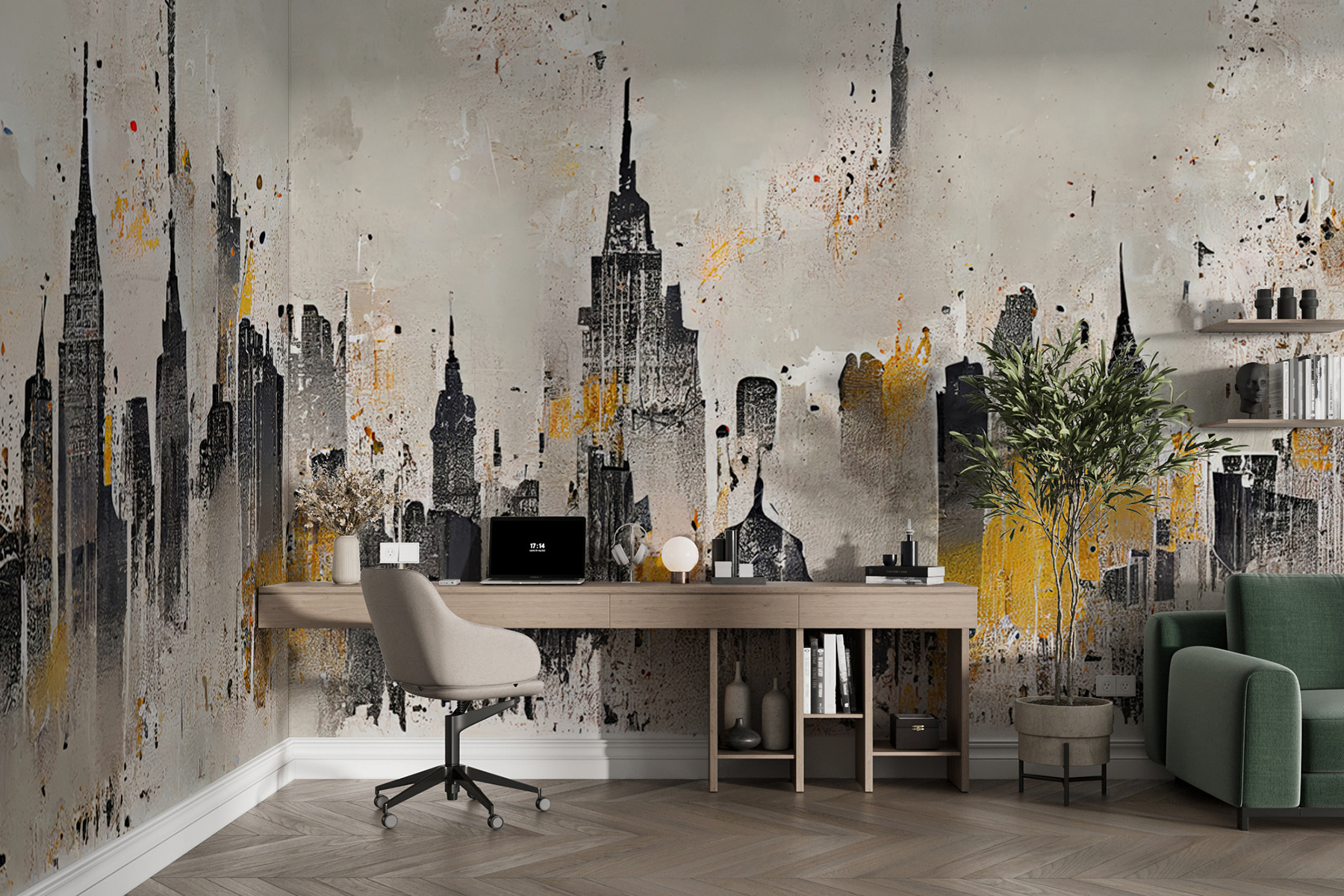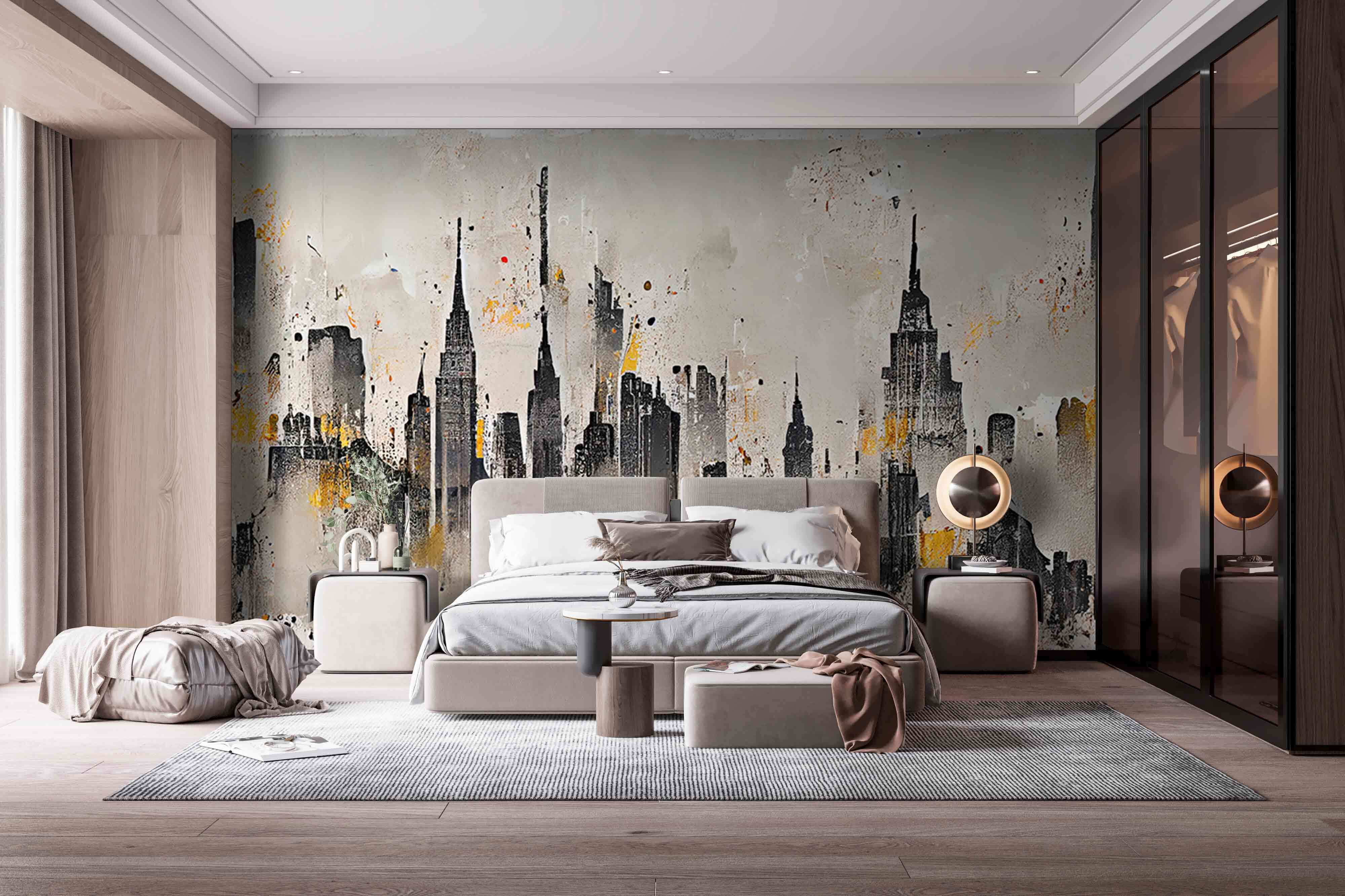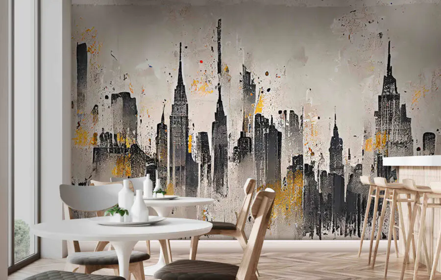 Transformez votre espace avec cette superbe peinture murale qui donne vie à la ligne d’horizon d’une ville ! Imaginez-vous dans votre salon, les yeux rivés sur ces grands bâtiments audacieux qui semblent s’élever vers le ciel. Le mélange de noirs profonds et de teintes douces crée une atmosphère morose, parfaite pour tous ceux qui apprécient une touche artistique. Imaginez des soirées douillettes entre amis, où l’on discute pendant que la peinture murale s’impose subtilement derrière vous. C’est comme si vous aviez un morceau du paysage urbain sans sortir de chez vous. Chaque coup d’œil à cette peinture murale peut susciter un peu d’envie de voyager – qui n’aime pas rêver d’aventures en ville ? Ce n’est pas seulement un décor, c’est une invitation quotidienne à l’aventure.