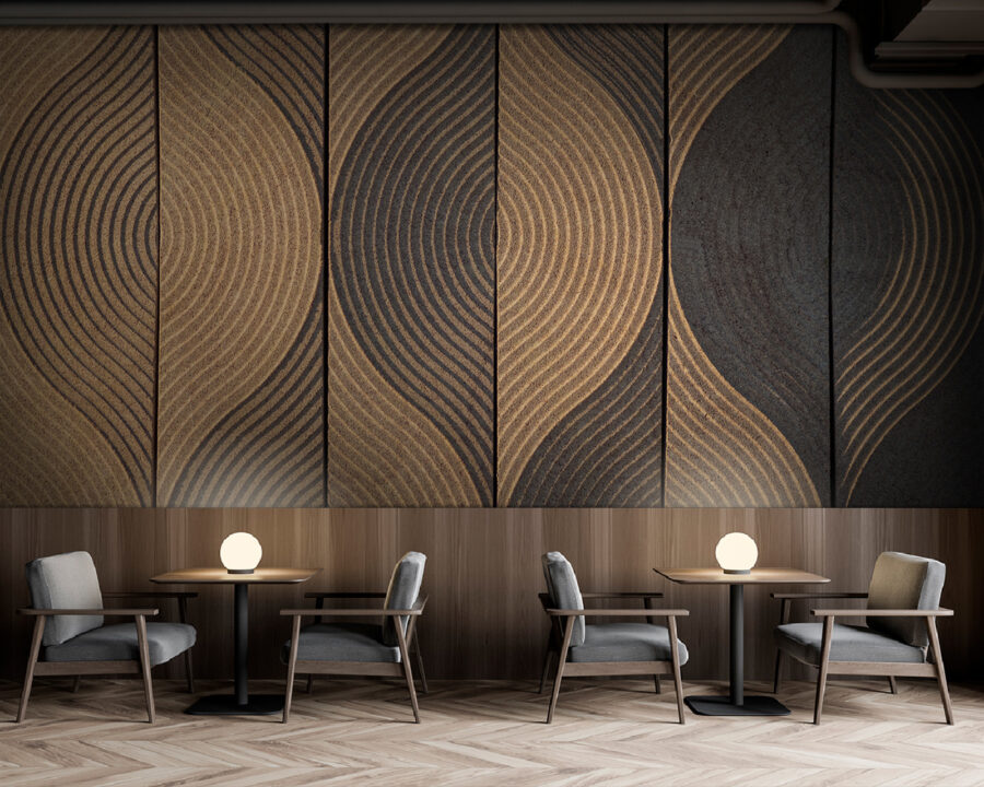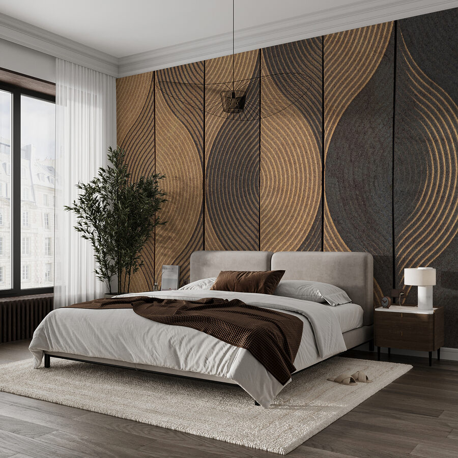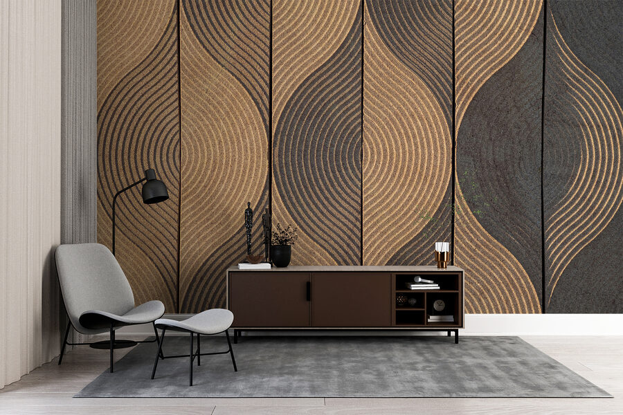 Imaginez que vous puissiez vous détendre dans une pièce dont les murs vous apportent instantanément une ambiance calme et terreuse – c’est ce que fait cette peinture murale. Littéralement, c’est comme si vous aviez un jardin zen sur votre mur. Ces motifs de vagues sur les panneaux de bois créent un rythme naturel magnifique qui vous attire. C’est un peu hypnotique, non ?