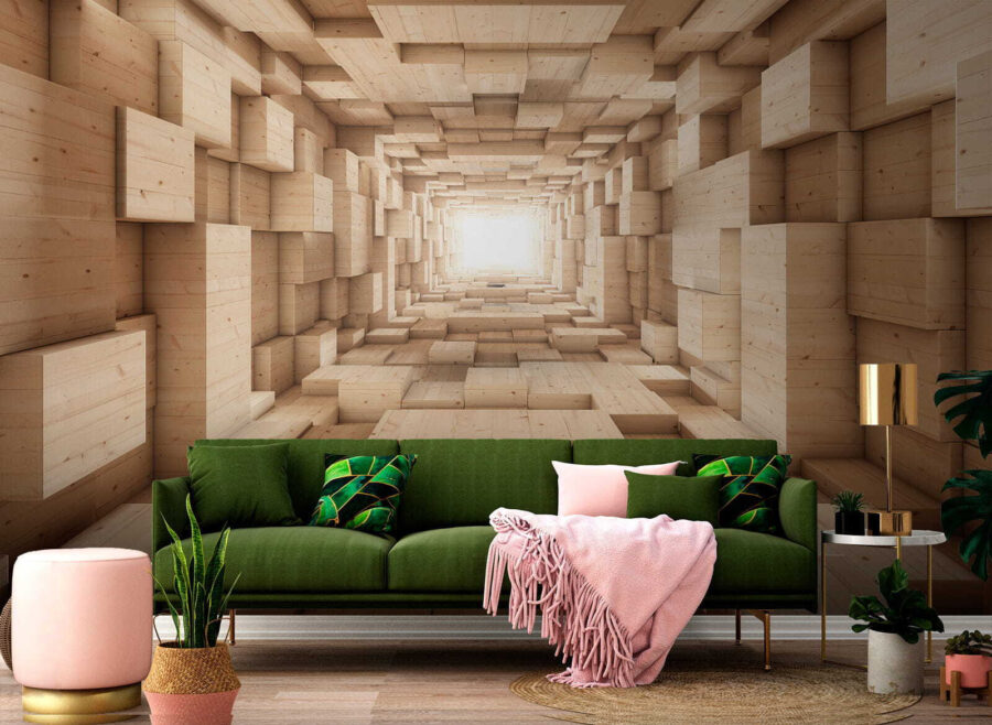 Hé, regardez ça ! Cette fresque murale, intitulée “Boîte en bois sur un mur”, est vraiment cool. Imaginez que vous entrez dans une pièce qui ressemble à un labyrinthe en bois composé de blocs 3D – on se croirait dans un jeu d’aventure. Cette œuvre est parfaite pour tous ceux qui aiment les motifs modernes et abstraits. Il crée une impression de profondeur et de mouvement, comme si le mur prenait vie. De plus, les tons de bois naturel ajoutent une touche de chaleur et de confort. Idéal pour transformer votre salon, votre bureau ou tout autre espace qui a besoin d’un peu de magie. Sérieusement, vous vous y perdrez, de la meilleure façon qui soit.