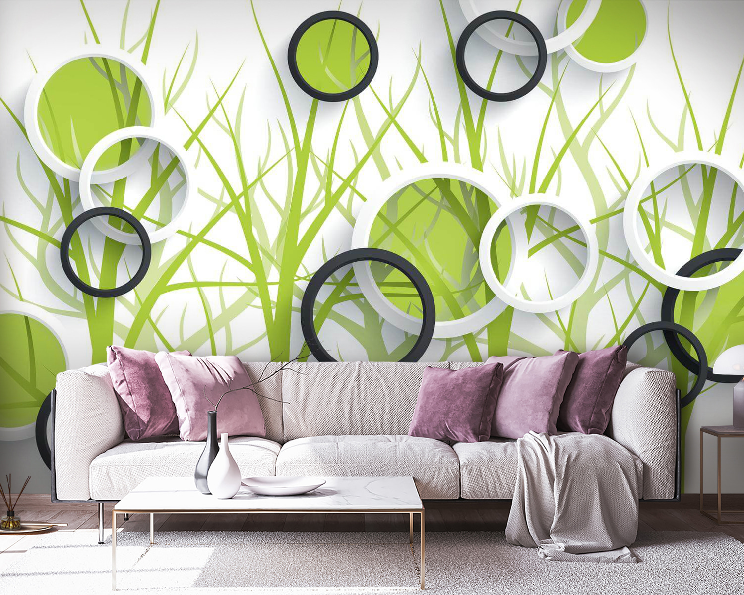 Transforming a room into a cozy haven might just be a peel-and-stick away with this “Wall Murals Wallpaper with Circles and Trees.” Imagine stepping into a world where geometric shapes meet nature’s charm. Those vibrant greens mixed with the clean lines of circles create an airy vibe that feels fresh—like opening a window on a spring day!